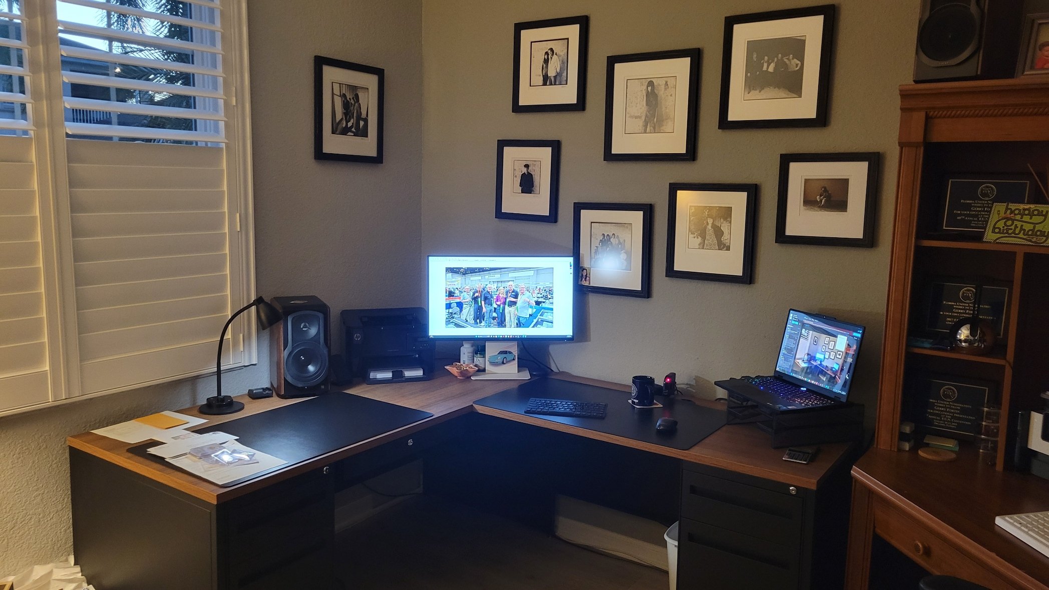 Let's wrap up today's edition at this point with an overdue promised picture of my upgraded Venice office. The past week, Diane and I have installed a new L shaped desk system along with a fresh 27" Dell monitor. The desks provide substantially more table space for new projects. For those Blog readers who have not previously seen a snapshot of the Venice office, the prints are original Herb Greene photographs from the late 1960s San Francisco music scene. My office days are shared with Grace Slick/Jefferson Airplane, Janis Joplin along with Big Brother and the Holding Company, Jerry Garcia, and Bill Graham of the Fillmore East and West fame. On the side wall is a photograph of Led Zeppelin taken in San Francisco during their first United States tour. During the early GFRC days, I was fortunate to have Howard Shickler as a client. Howard was friends with Herb Greene and funded Herb's drug habit with cash in exchange for dark room prints of these iconic images. Howard moved to NYC where he ran a gallery and sold all types of artwork including his San Francisco print hoard. Eventually, Howard moves to Sarasota where I would visit his studio and hundreds of remaining prints including one of the largest stores of early NASA photography and artifacts. Howard and I arranged a coin trade for prints as the basis for these wall hangings.