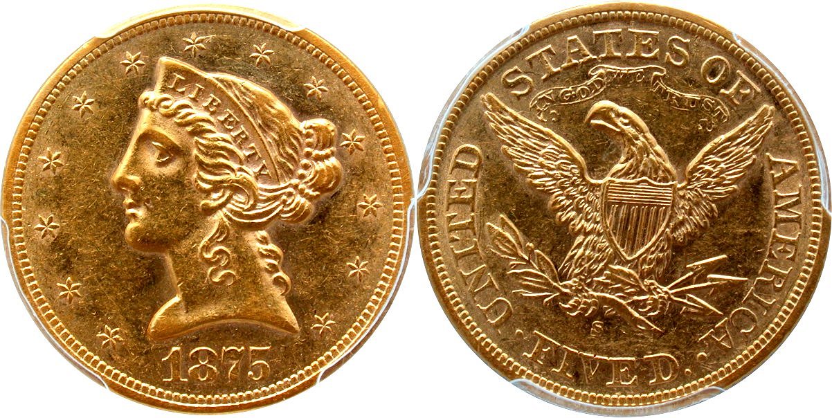 Gold G$5 1875S Gold G$5 1875-S