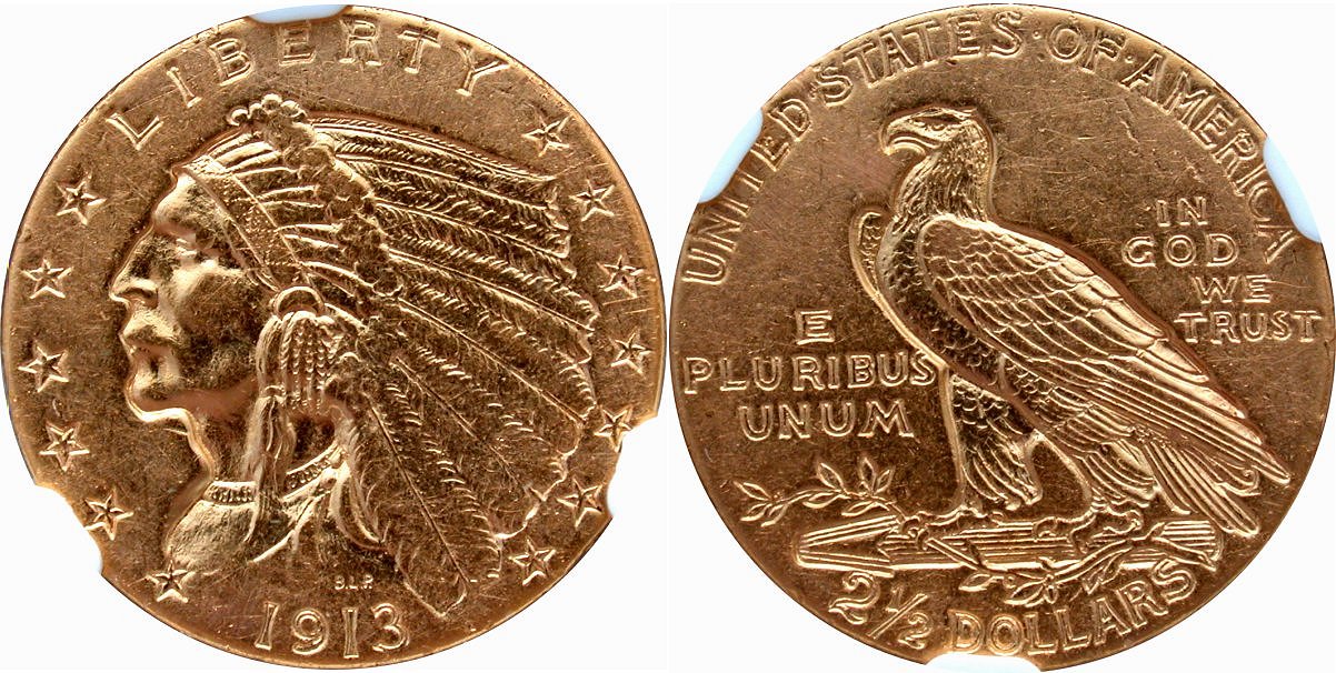 Gem $3600 New October 19! Gem Original, A Type Set Offering, Island City Collection.. Honey-gold surfaces admit scattered pink and copper patina, and the overall eye appeal of this lustrous, GFRC-rated Gem piece is strong. The $2.50 and $5 Indian series were struck on flat planchets, not upset, and the lack of rims leads to even toning at the peripheries. This pieces comes in an optimal collector grade, advanced in the condition census, with a large price jump in the next grade. CAC records 500 coins total, 96 pieces in MS64, and just 11 examples finer, all in MS65. The CAC price guide in MS64 is $3,600, advancing to $14,500 in MS65. Housed in PCGS Gen 4.0 (1998-2002) holder with CAC approval.