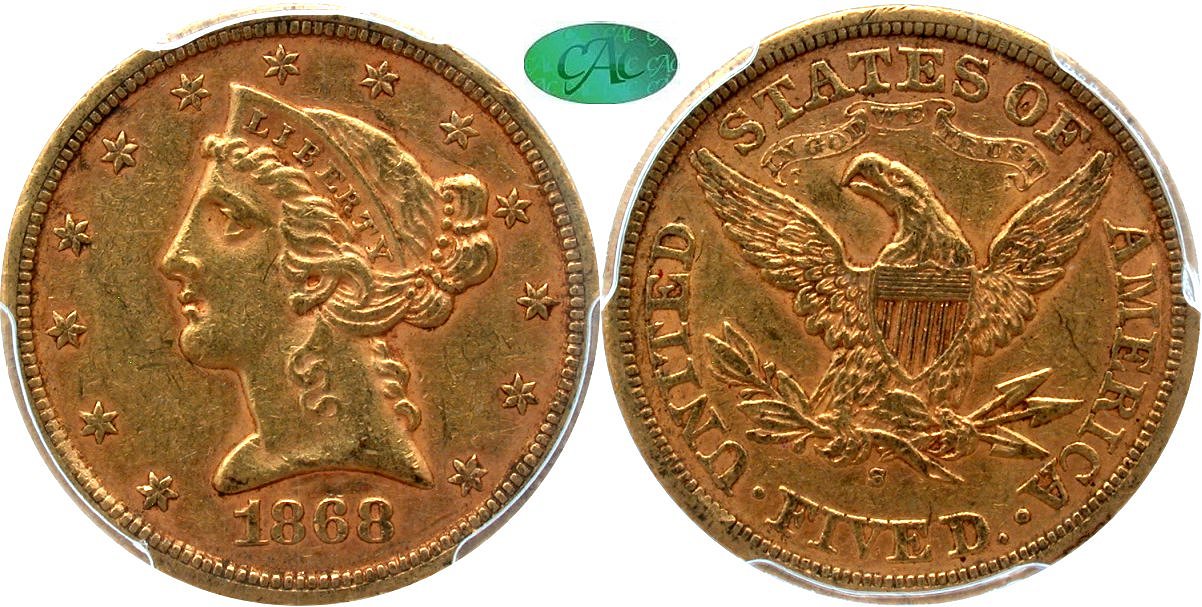 Gold G$5 1868S Gold G$5 1868-S
