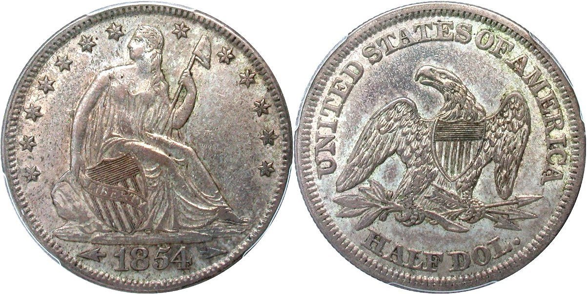 Price Reduction Effective February 12, 2019: Choice Original, Frosty Gray Luster, Pleasing and Attractive, Fairly Graded, Oregon Beaver Collection. This lovely 1854 With Arrows half dollar is ideal for a type set or date and mintmark. Honestly, I really like this piece due to its natural light gray patina and frosty luster. Under a light source, the fields take on a steely texture and are reflective. Surfaces are so choice and strictly original. Housed in 2015 style PCGS holder. Another fine numismatic offering from the Oregon Beaver Collection. December 1969