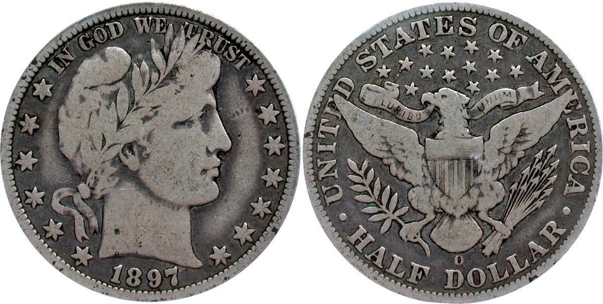 Very Scarce Date, Coin Gray Patina, Choice Overall, New Orleans Collection. Consignor Pricing Reduction. With a mintage of only 632,000, the 1897-O Barber half dollar date has earned respect for its scarcity. The Fine grades are the last "affordable level" before becoming a four figure coin in VF. I'm going with a JUST BUY IT NOW recommendation for this well preserved and choice example from none other than the New Orleans Collection. An attractively choice survivor with a base layer of coin gray patina along with a darker gray peripheral ring on the obverse. The reverse, on the other hand, is an even medium gray. Surfaces are pristine at grade. This piece warrants a GFRC-Choice quality rating and a fair offer price. Purchased during 2010 and returning to the market fourteen years later. Housed in PCGS Gen 4.4 (2005-2011) holder. December 1969