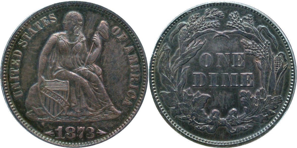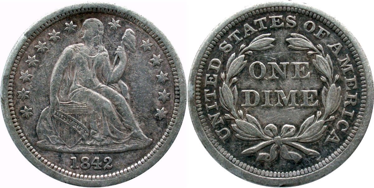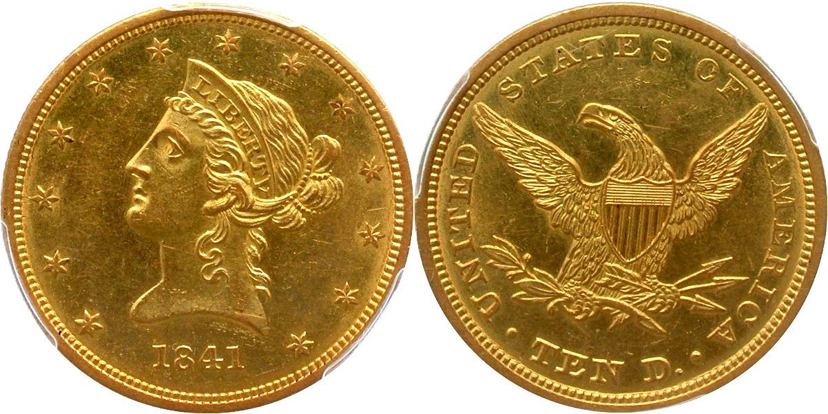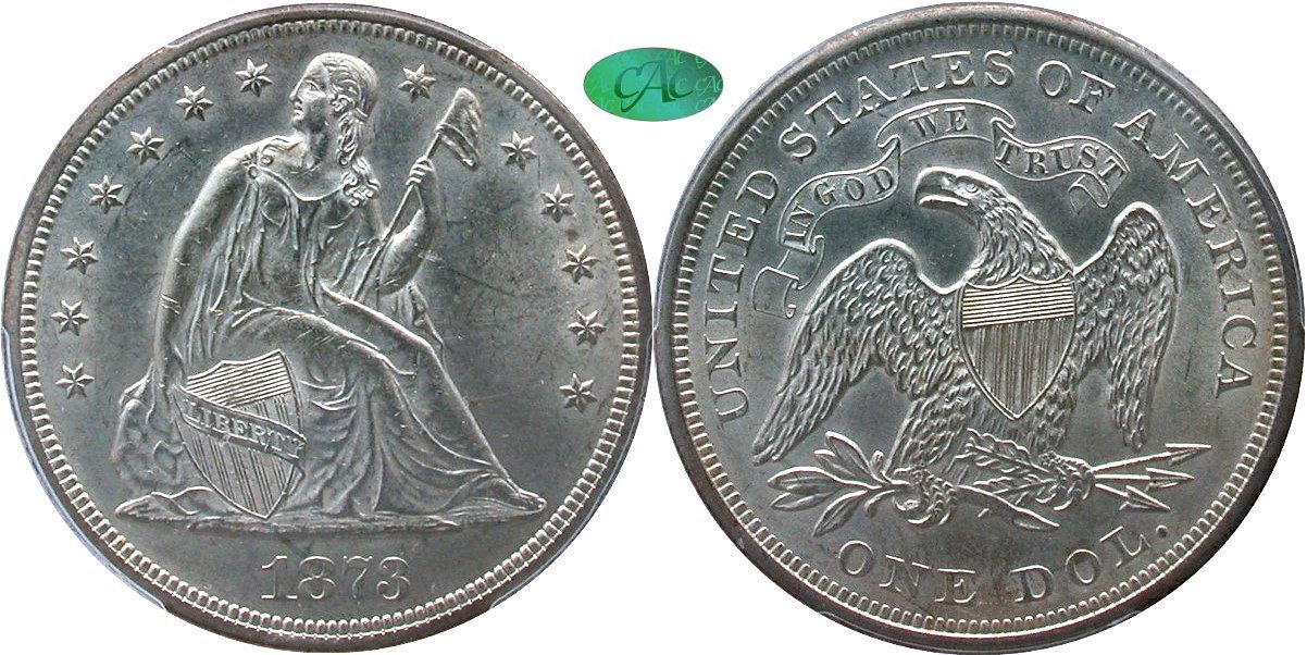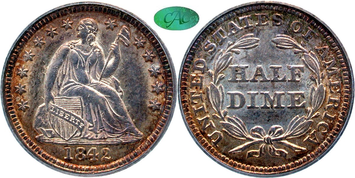 1842 PCGS AU55 CAC OGH H10C                                                   1873-S PCGS MS62 CAC H10C