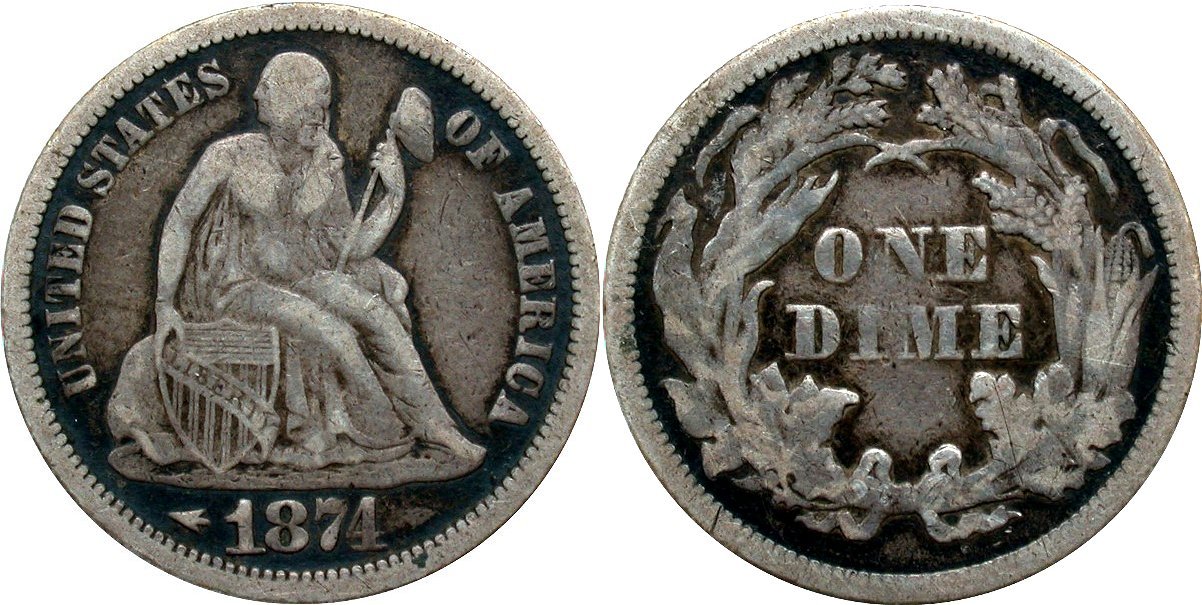 1853 Arrows F-126 Raw AU55 10C - New Die Pairing                                       1874 Arrows F-114 Raw F15 10C