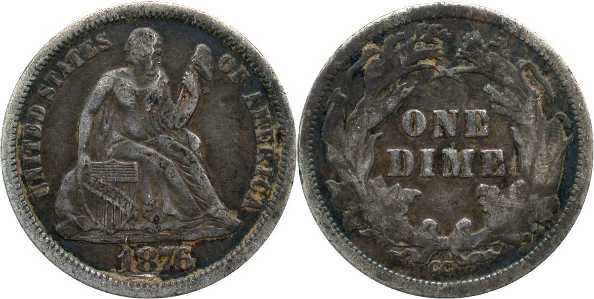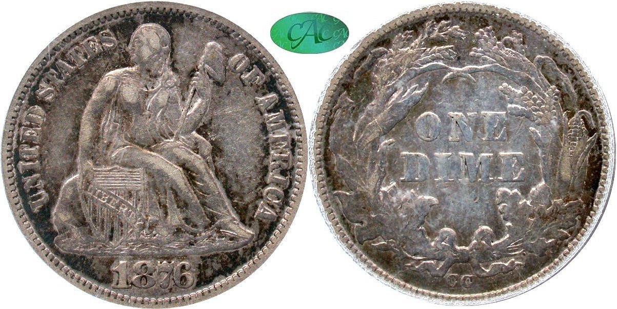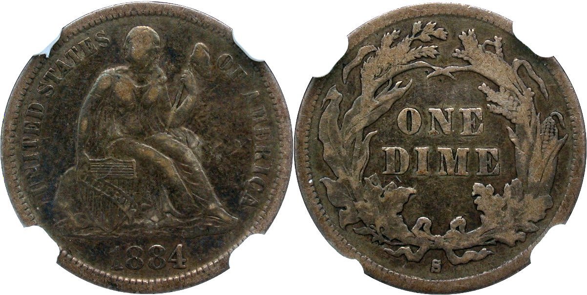 1876-S T2 F-101 Raw AU55 10C                      1884-S F-102 NGC VF30 10C                1853 A&R Raw VG10 25C - Rotated Rev