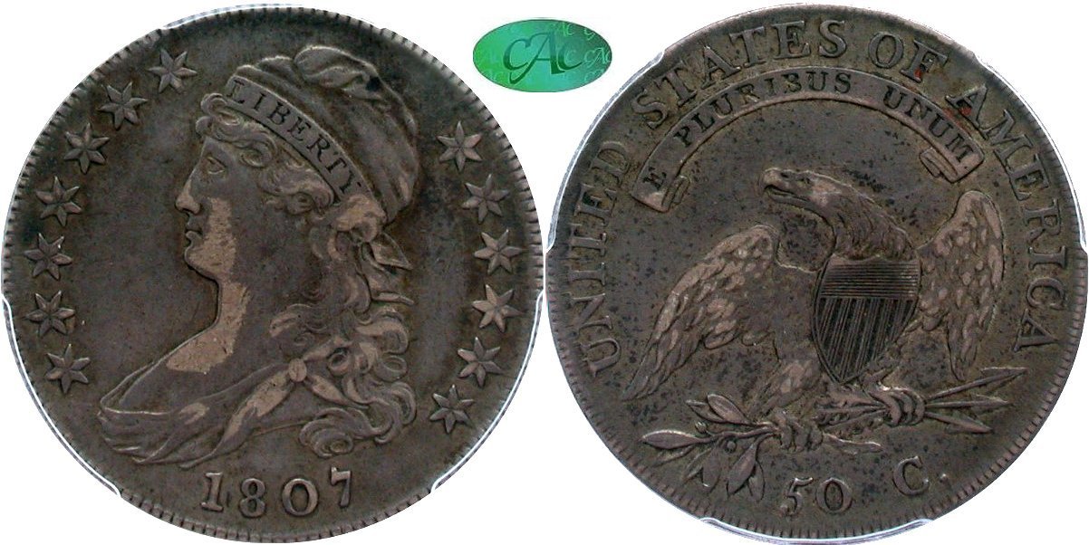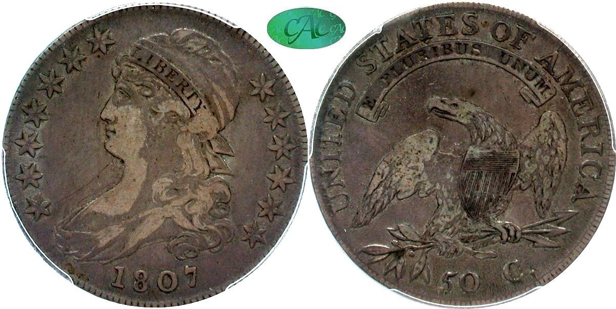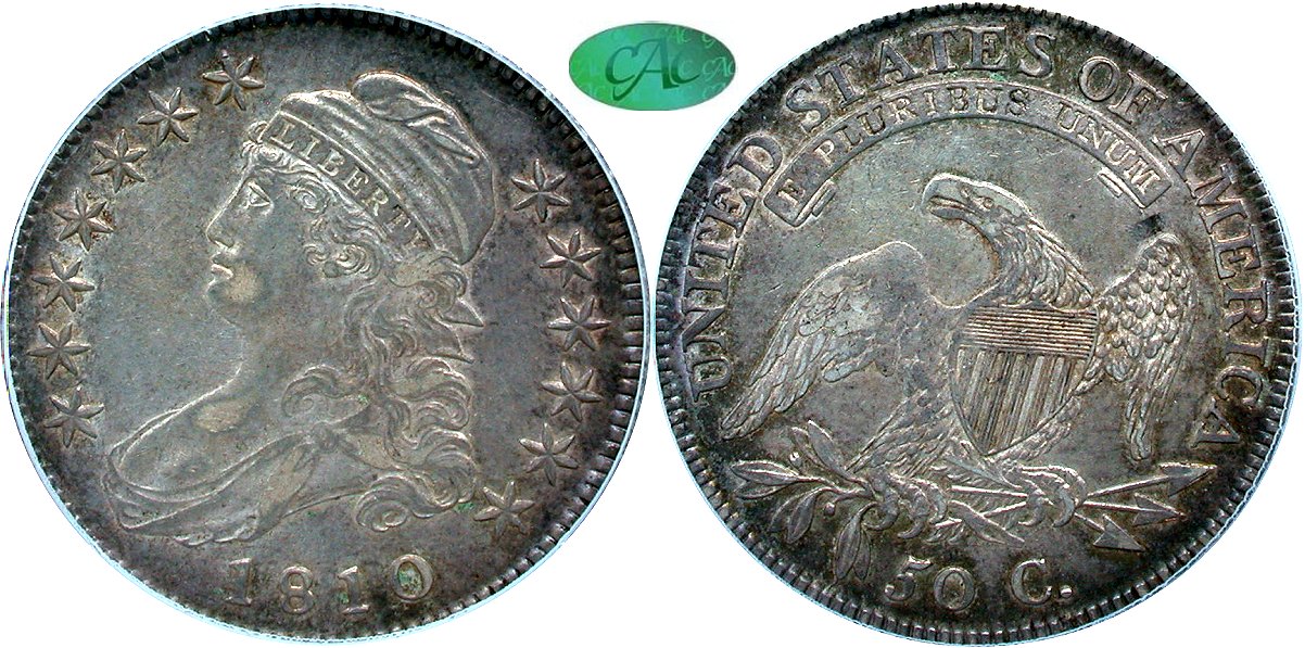 1807 50/20 O-112 PCGS VF35 CAC 50C                                              1810 O-102 PCGS AU53 CAC 50C