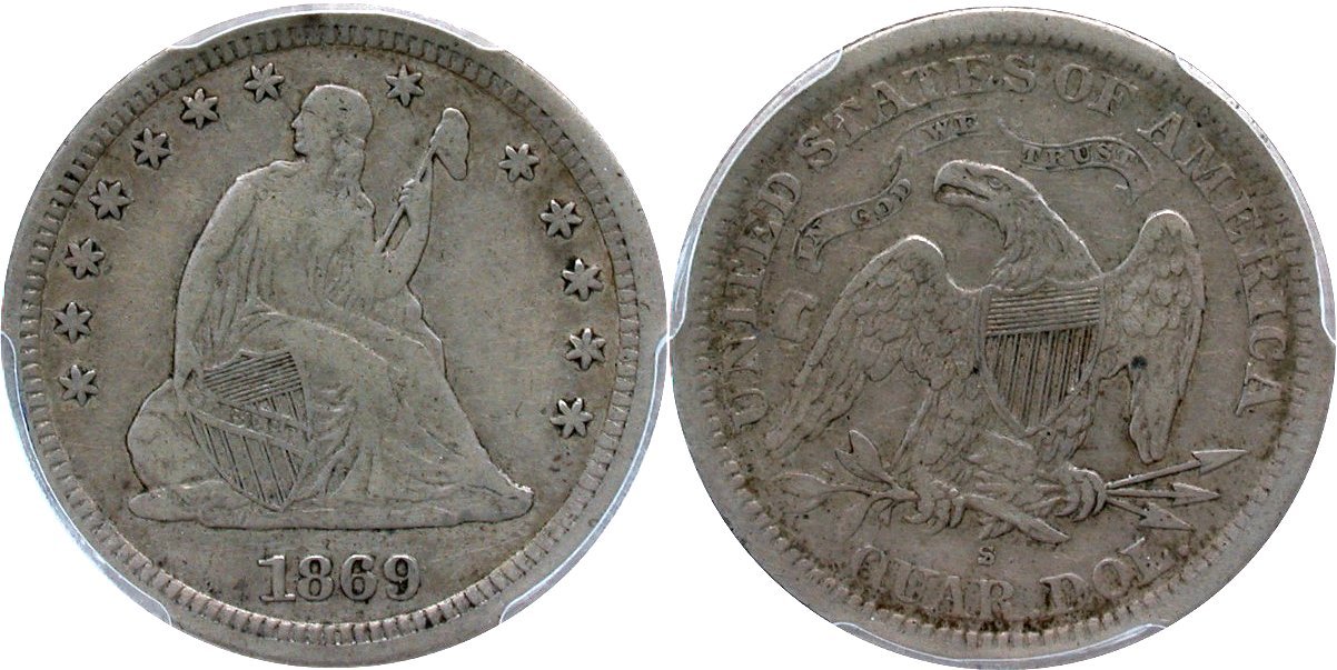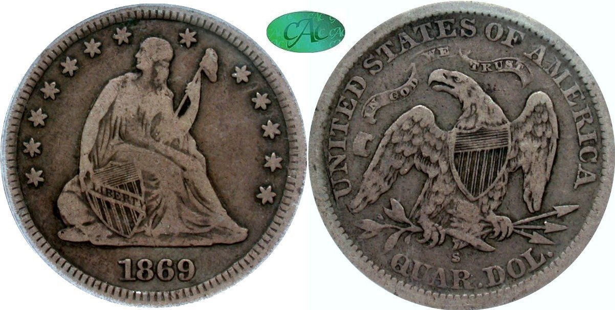 1866-S PCGS VG10 CAC 25C                         1868-S PCGS F12 CAC 25C                         1869-S PCGS F15 CAC 25C