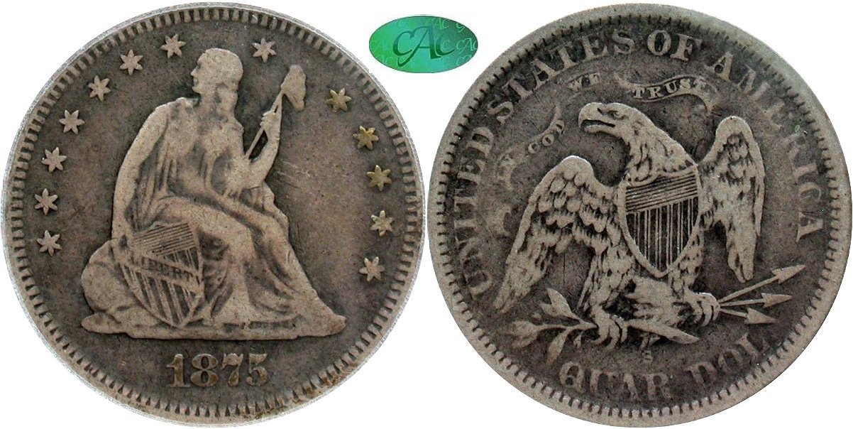 1874-S PCGS F12 CAC 25C                         1875-S PCGS F15 CAC 25C                            1878-S PCGS F12 CAC 25C