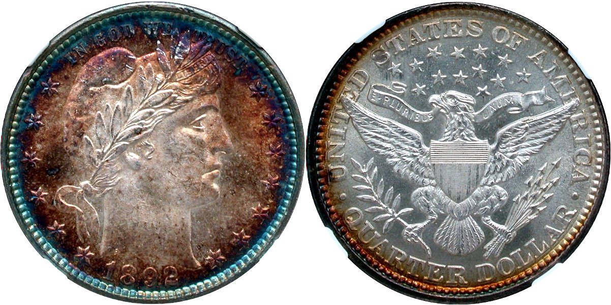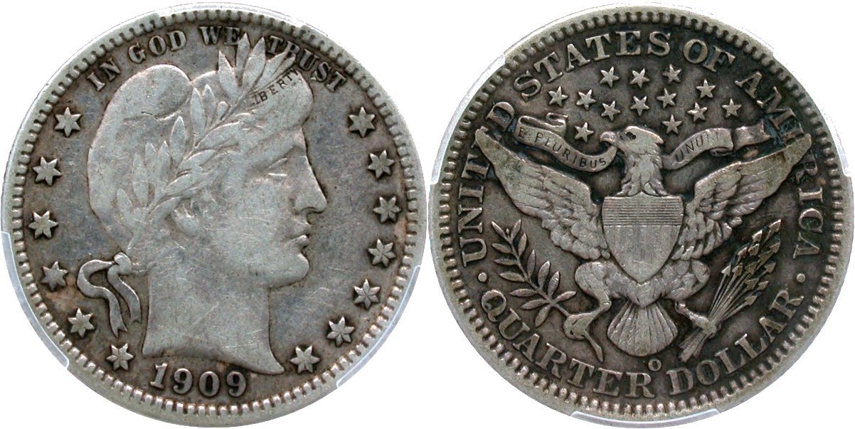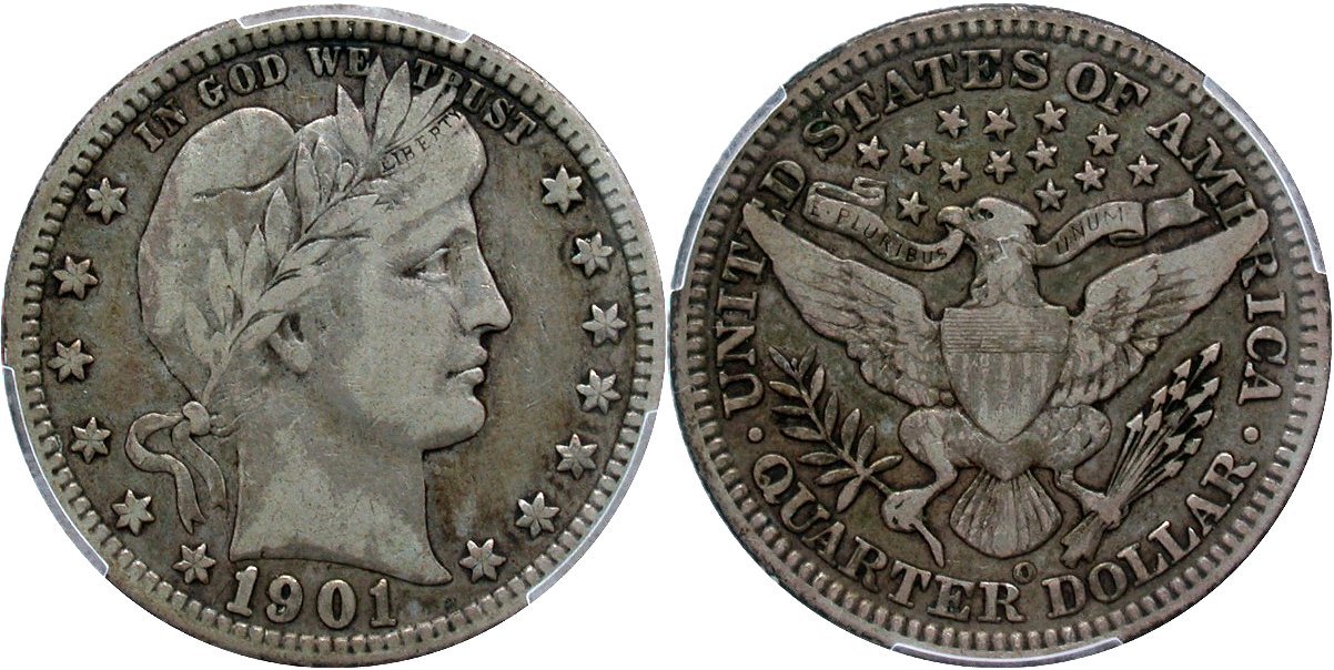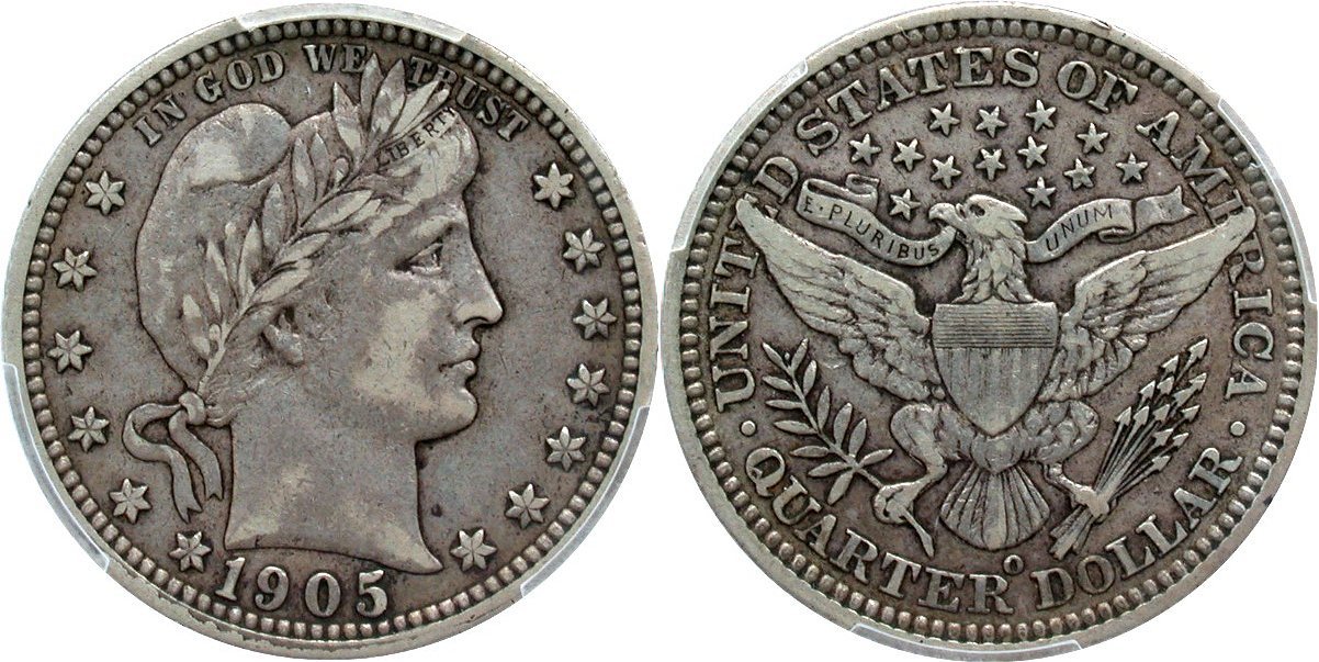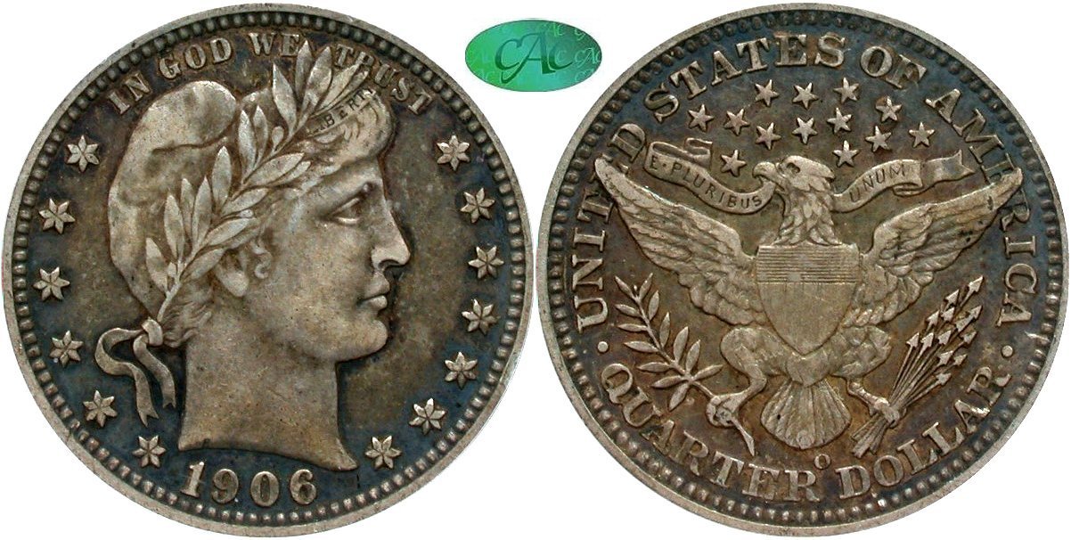 Barber 25c: 1900 PCGS MS-66; 1908-O NGC MS66, the NGC plate coin