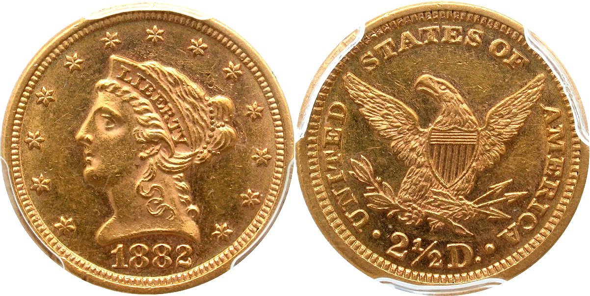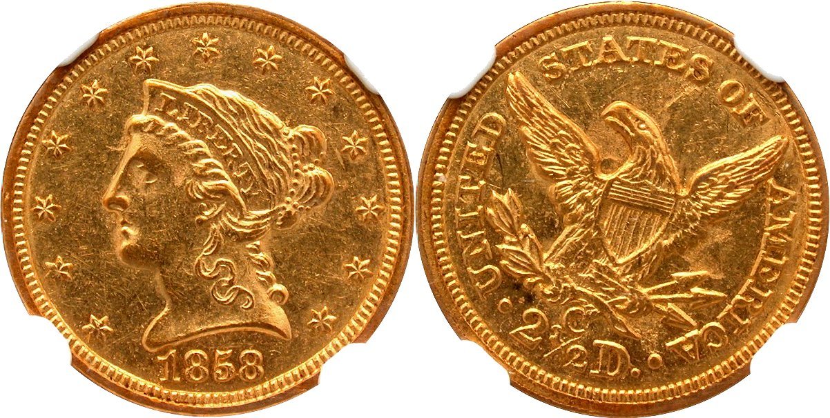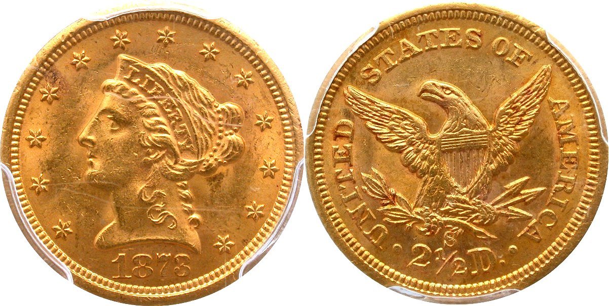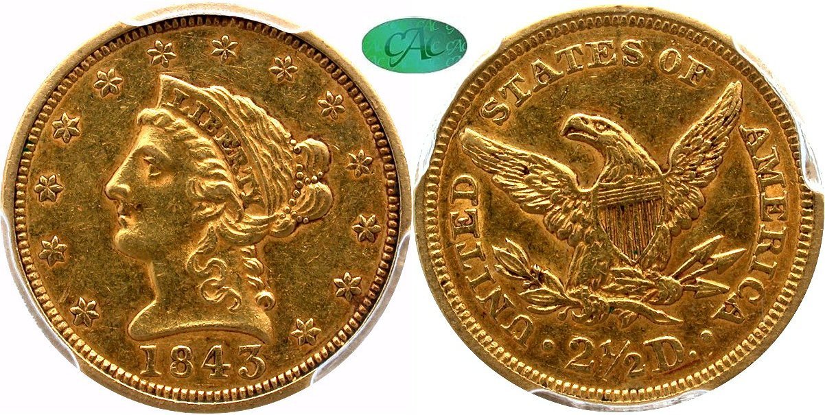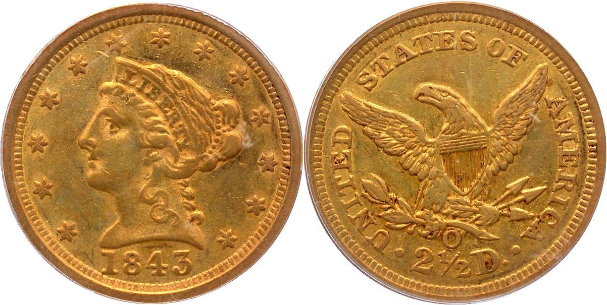 Gold $2.5: 1843-O Small Date PCGS AU58 CAC; 1878 PCGS MS64