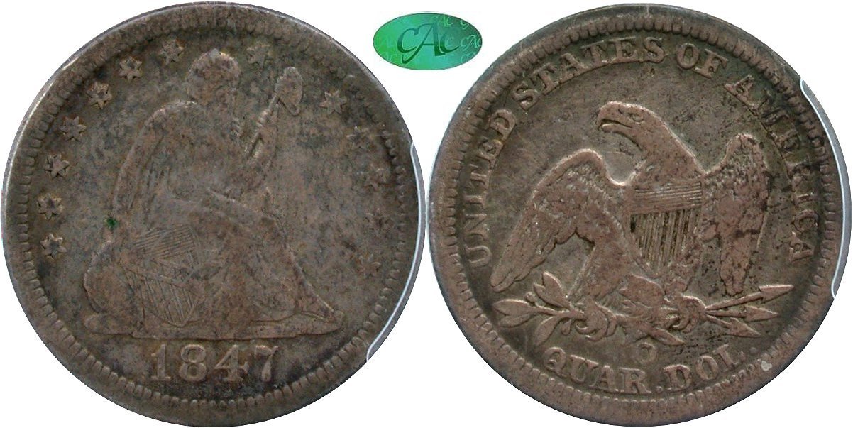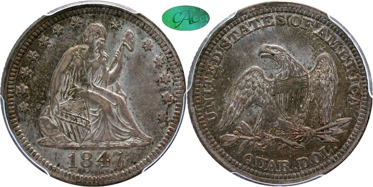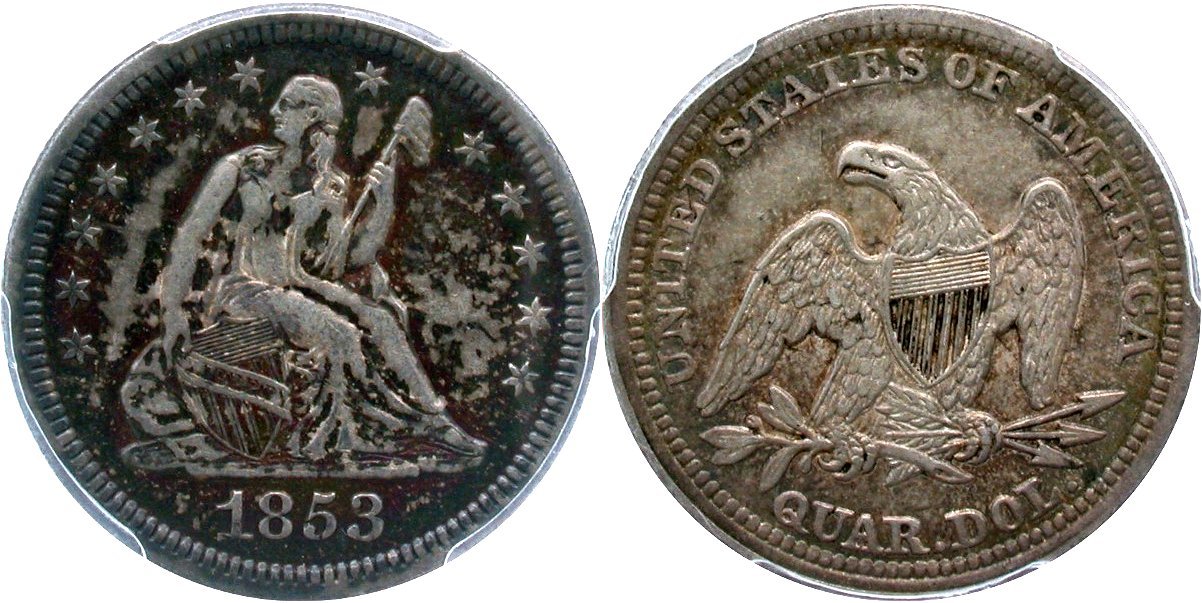 During Black Friday weekend, GFRC's staff cataloger, Len Augsburger, prepared individual lot descriptions. It is great to have Len on board handling lot research and description generation. Len provided the below commentary with little else to add from your s truly. Look for the Mountain View Collection Seated quarters to be posted to the price list by early afternoon. There are a host of First Rights of Refusals (FRoRs) which will be sorted out during today's lunch time hour.
