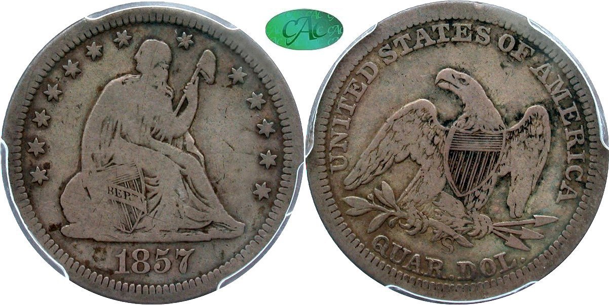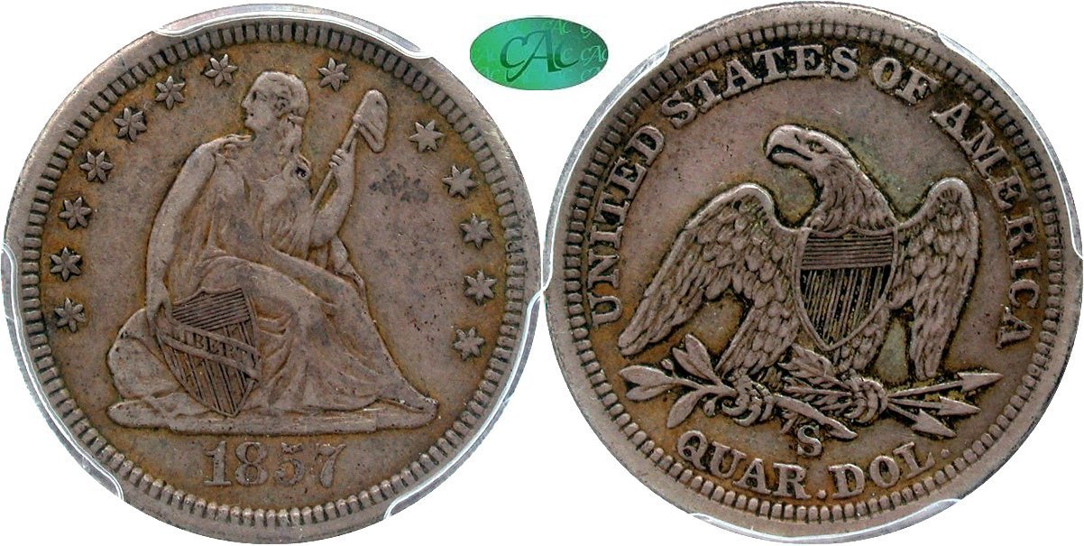 1856-S/S PCGS AG03 CAC 25C                         1856-S PCGS F15 CAC 25C                         1857-S PCGS VG08 CAC 25C