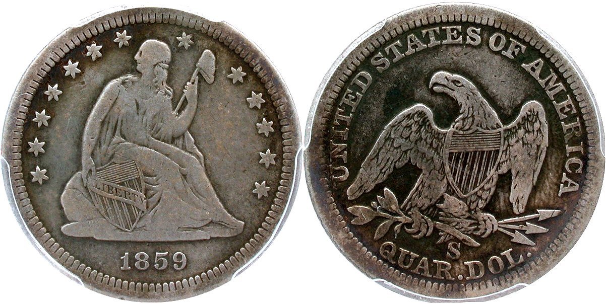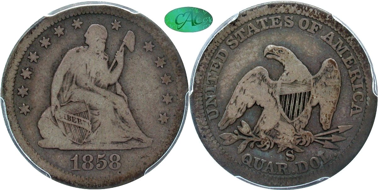 1858-S PCGS F15 CAC 25C                         1859-S PCGS VG10 CAC 25C                      1860-S PCGS VG08 CAC 25C