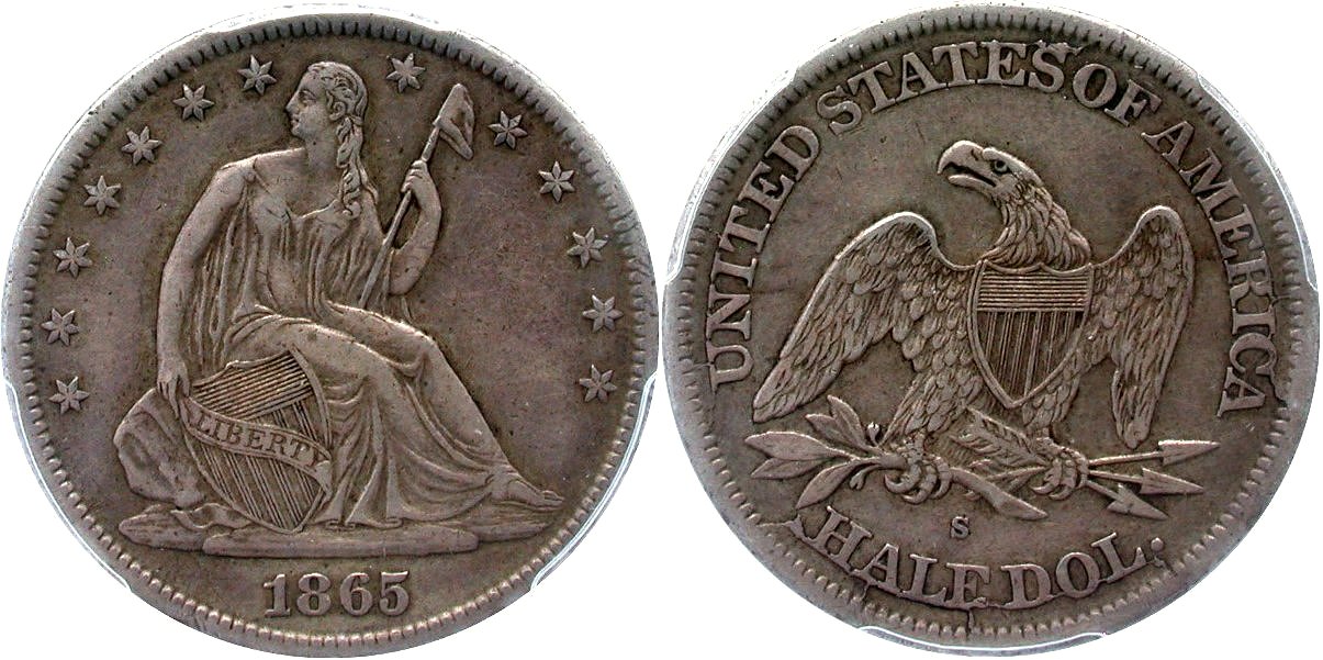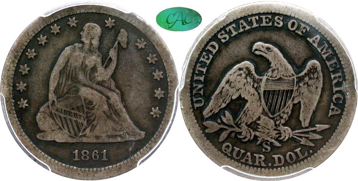 1861-S PCGS F12 CAC 25C                         1864-S PCGS G06 CAC 25C                         1865-S PCGS VG08 CAC 25C