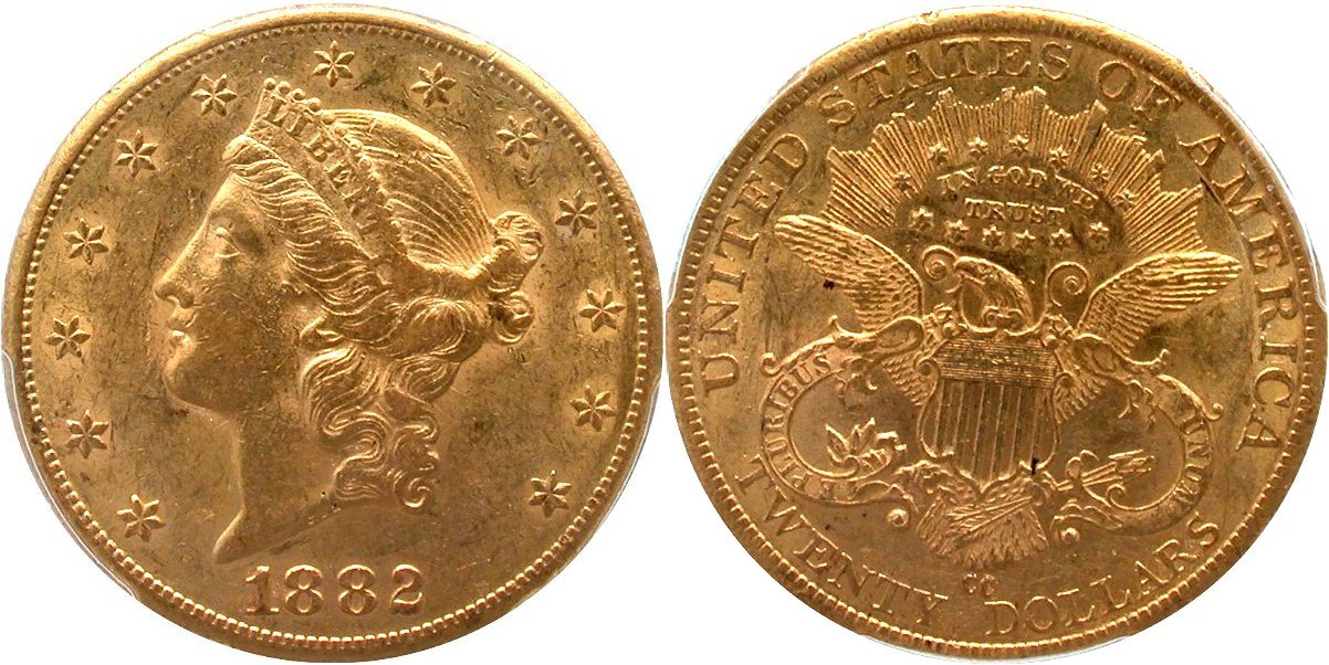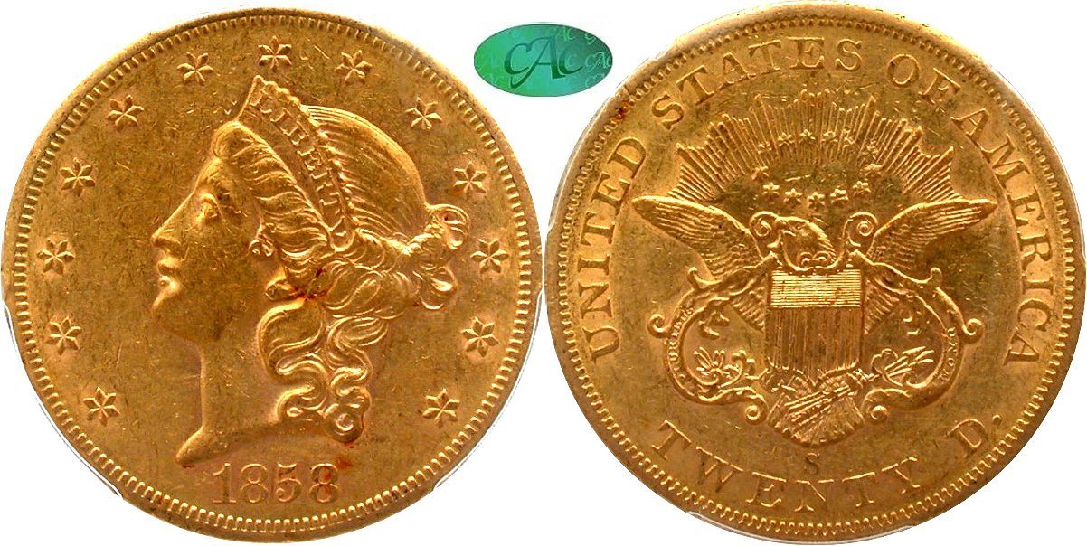 Gold $20: 1854 PCGS AU58 CAC; 1892-CC NGC AU53