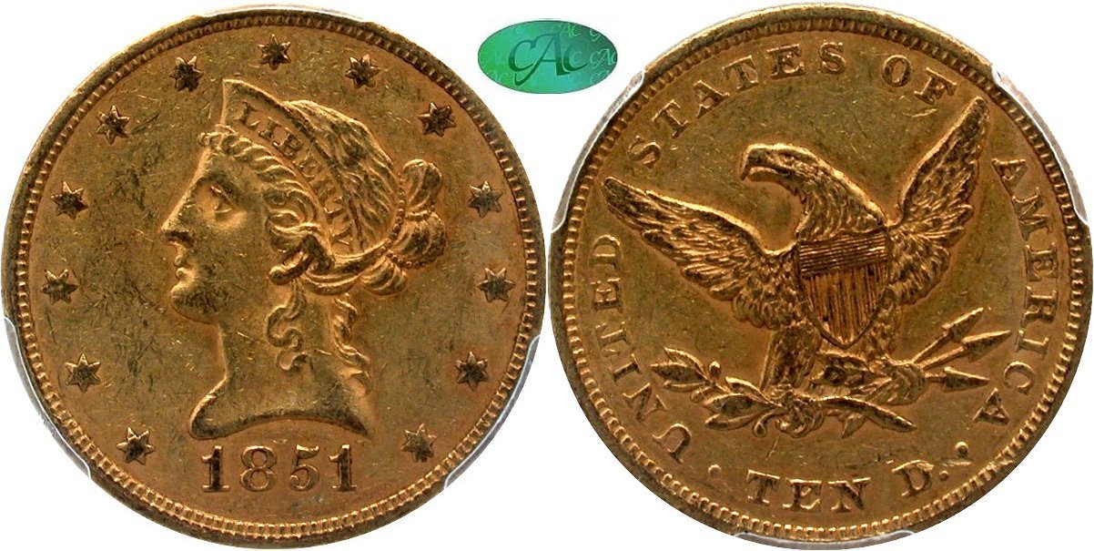 Gold $10: 1852 PCGS AU55