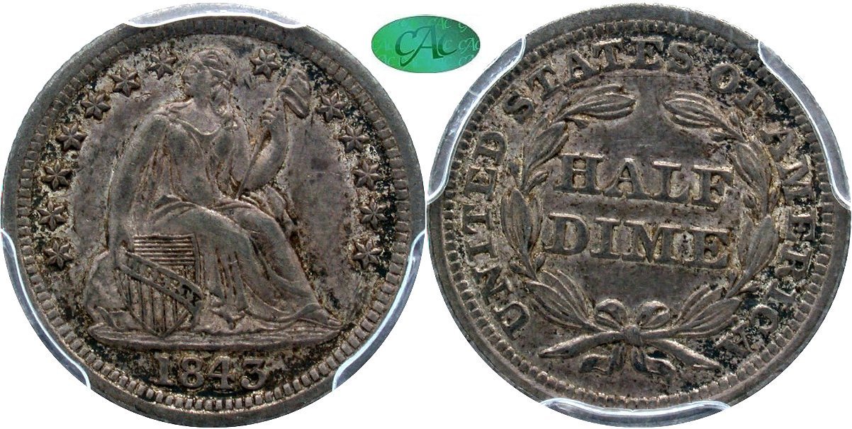 1843 WB-36 PCGS MS64 CAC 50C