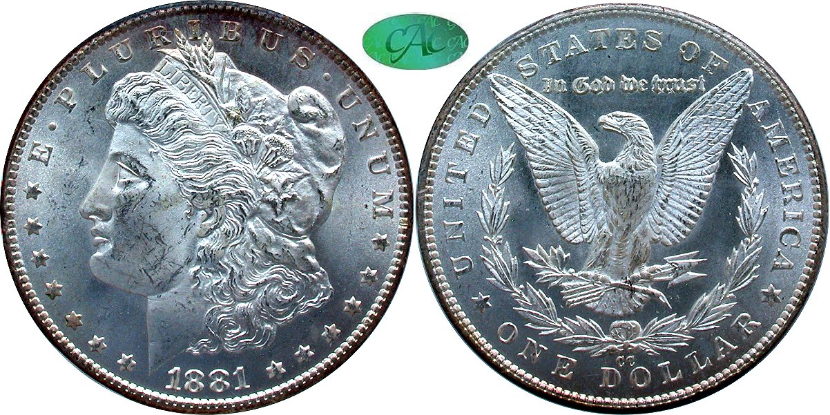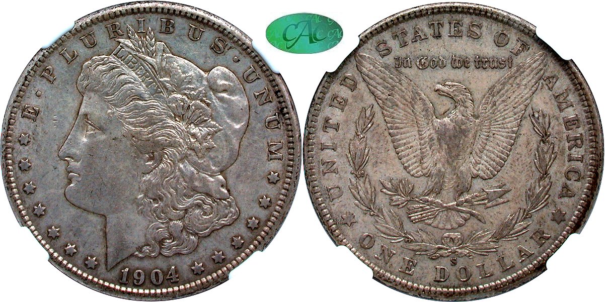 1881-CC PCGS MS64 CAC OGH $1                                                   1904-S NGC AU55 CAC $1