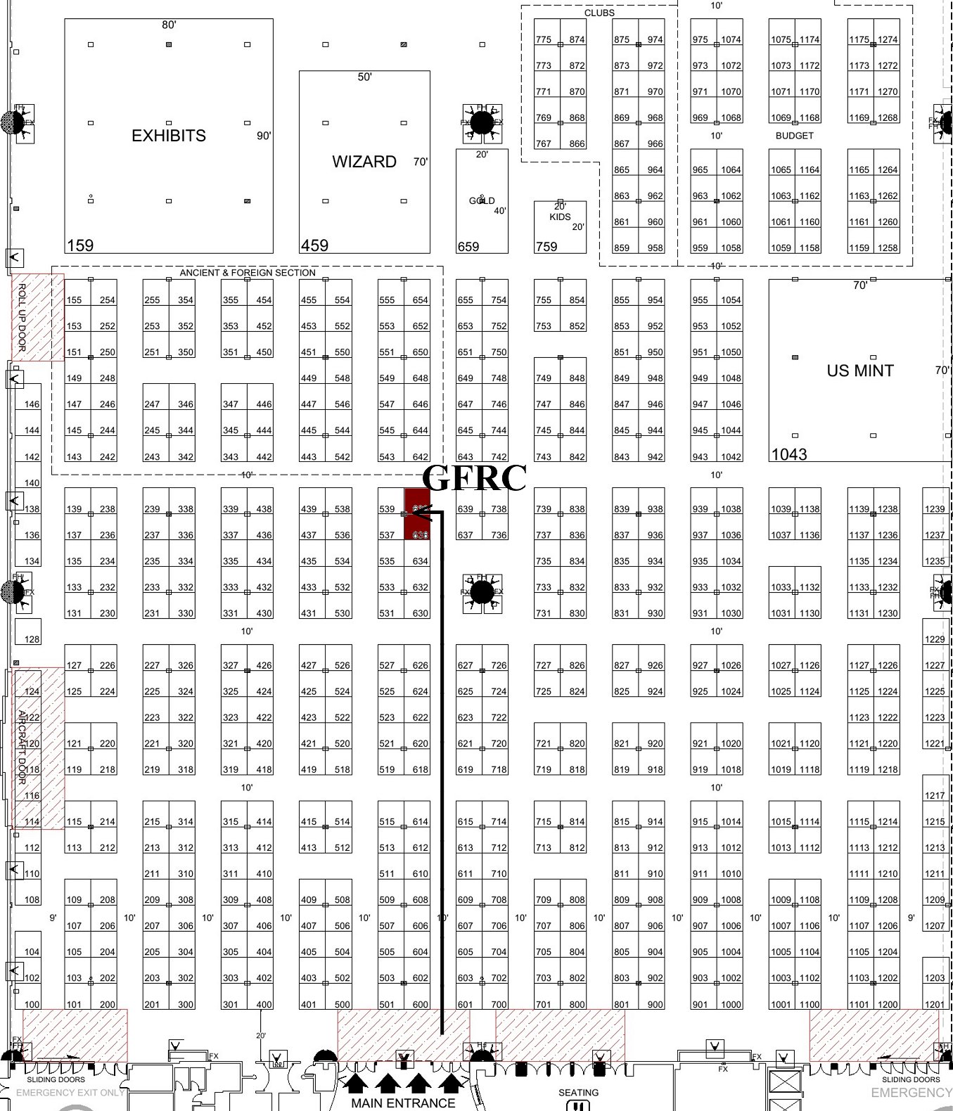 GFRC is pleased to announce that it will be attending the restarted Sarasota Coin Show scheduled for January 27 - 29 at the Sarasota Municipal Auditorium. Dan has been in contact with Frank Cox, the show promoter, with our three table reservation confirmed. We are moving to Table #10 which is immediately left upon entering the bourse floor.