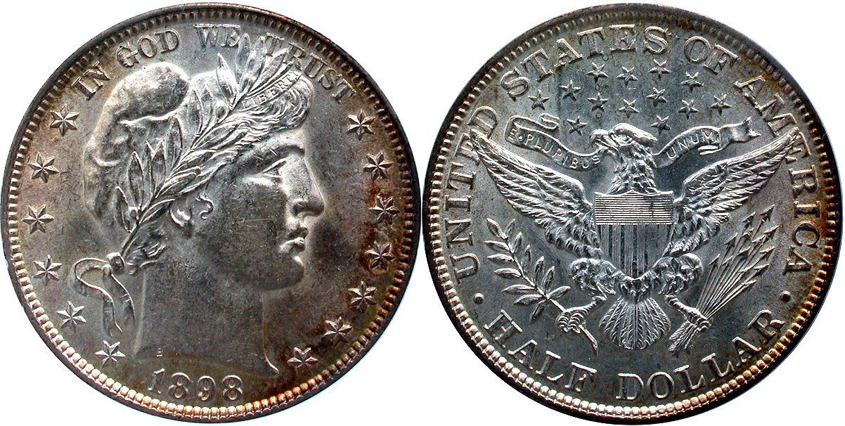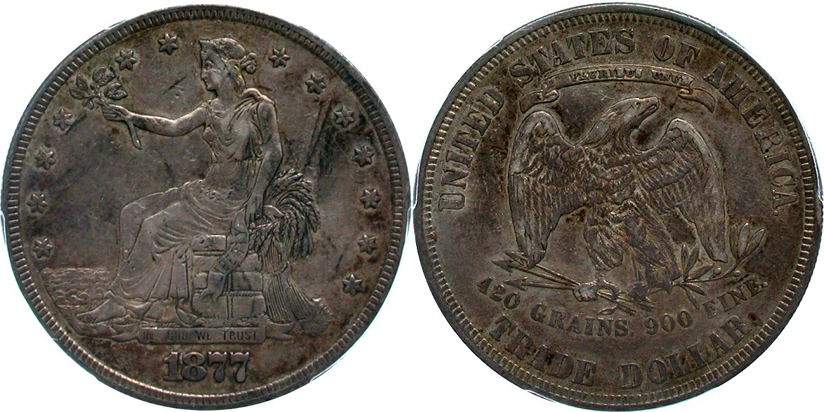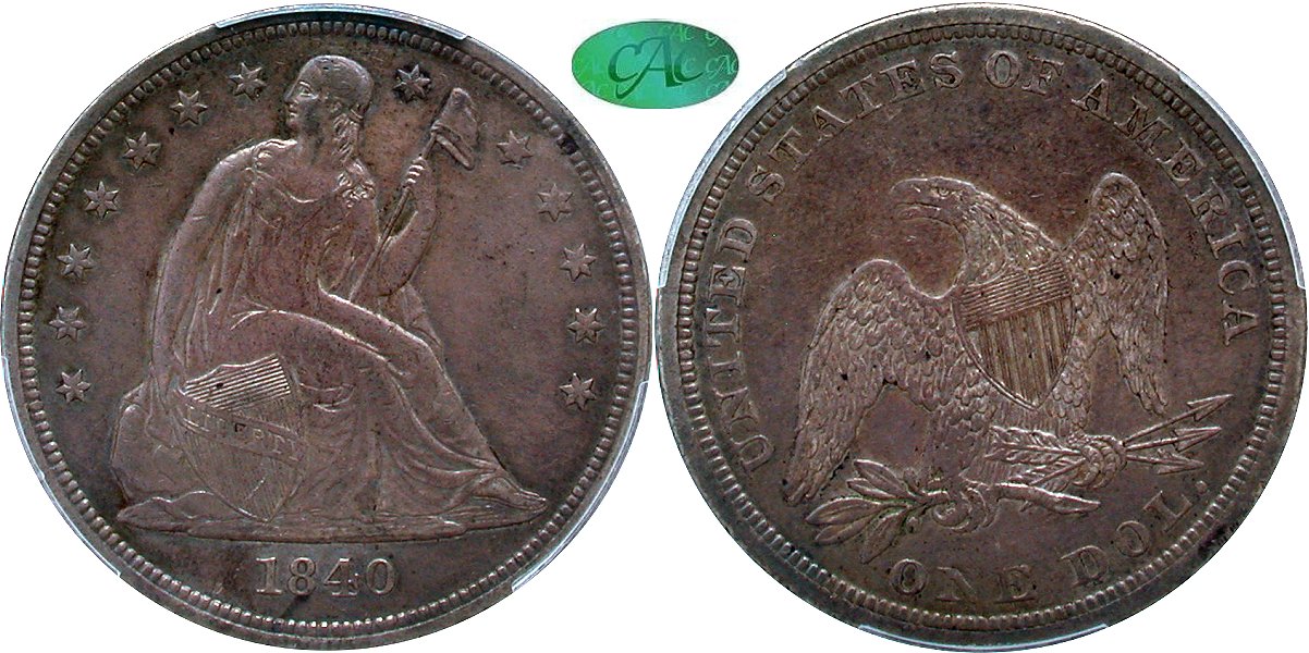 1898 PCGS AU58 50C                                1841 PCGS VF35 $1                                  1877 PCGS EF40 T$1