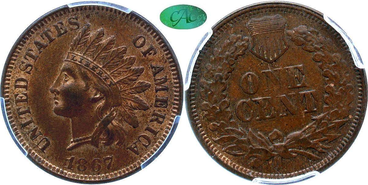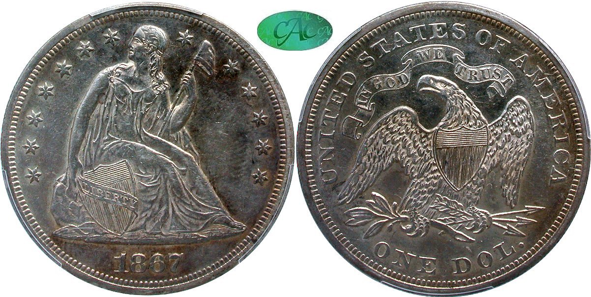1867 OC-1 PCGS AU50 CAC $1 - 6 Bids - $3015