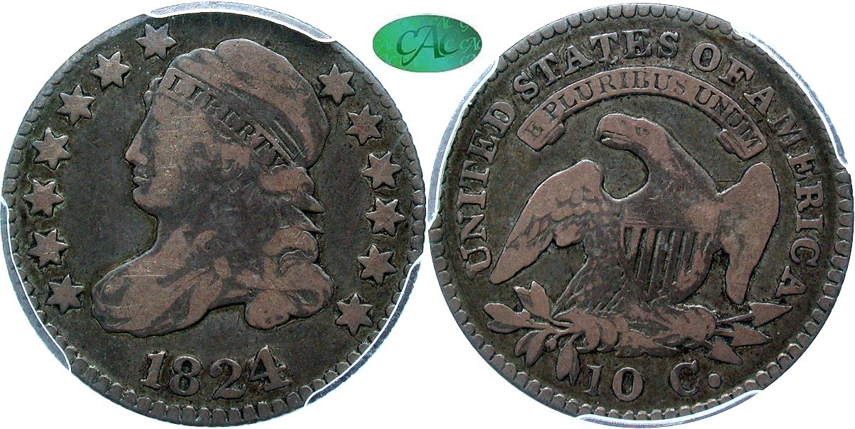 1820 STATESOF PCGS VF30 10C                 1824/2 PCGS VG08 CAC 10C                     1825 PCGS EF45 OGH 10C