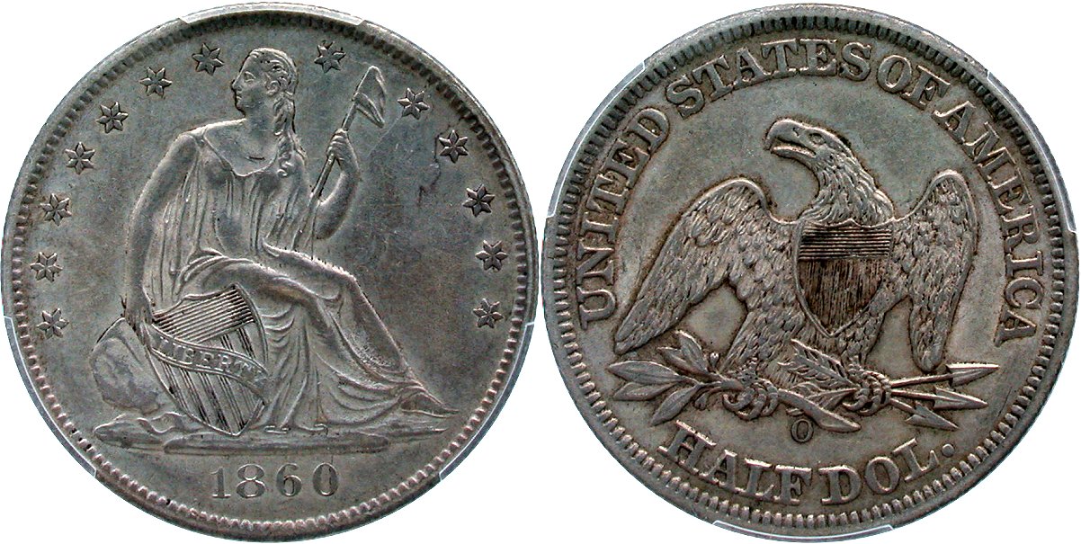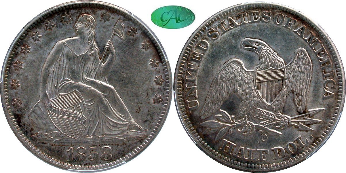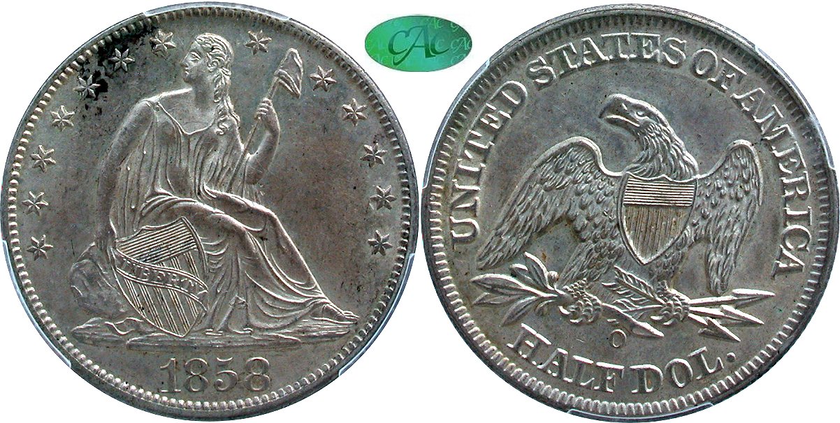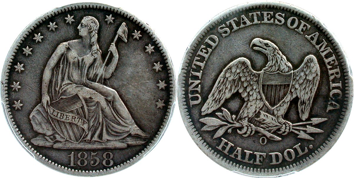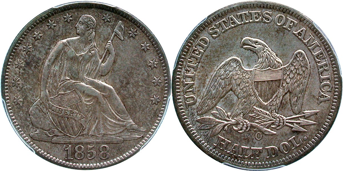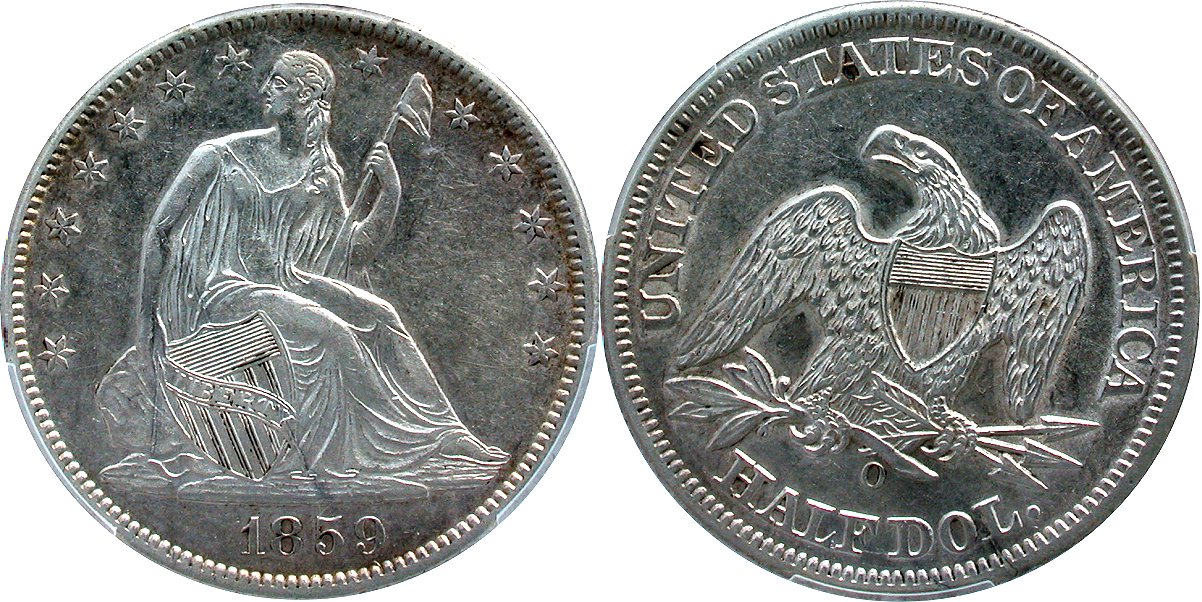 1858-O WB-39 PCGS AU55 50C                1858-S WB-12 PCGS EF45 50C              1859-O MPD WB-2 PCGS AU53 50C
