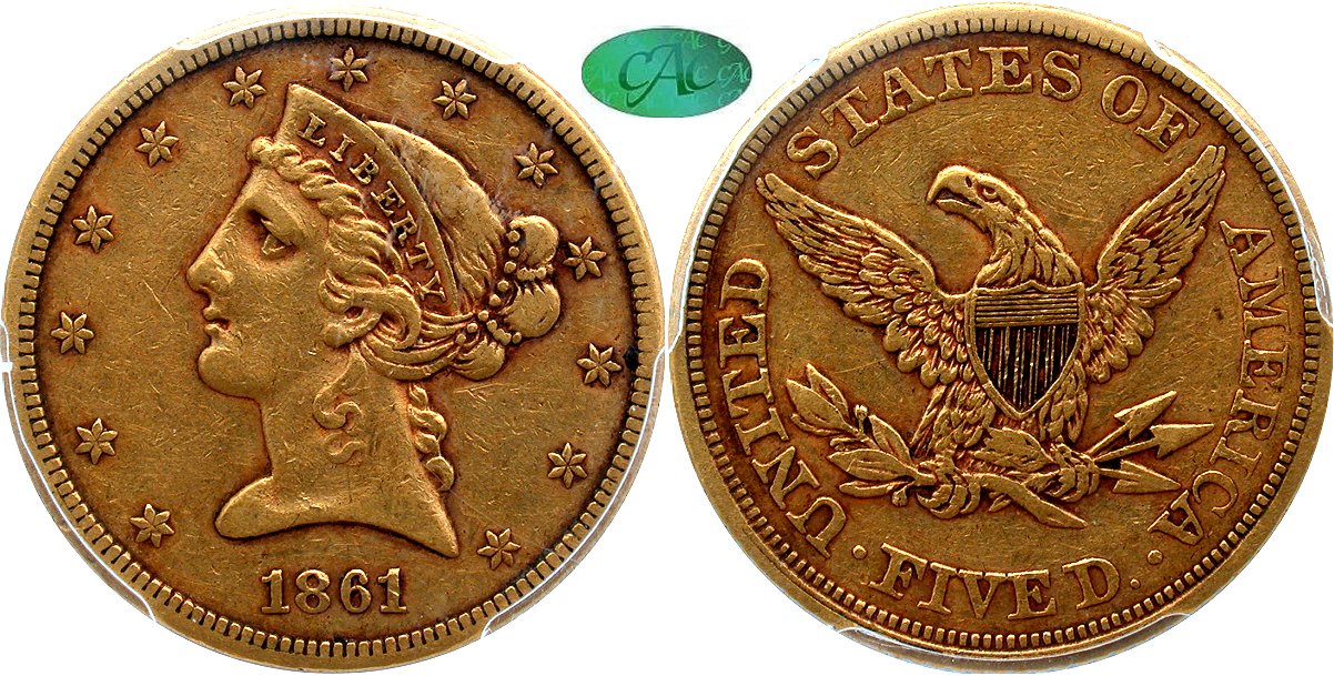 1861 OC-2 PCGS AU53 CAC $1 - 5 Bids - $8000