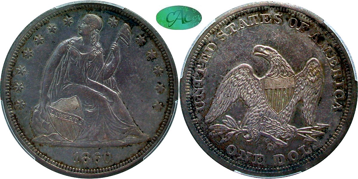 Though I continue to highlight CAC approved lots in the Blog, there are some excellent non-CAC approved lots that deserve your attention. Foremost is the 1859-S graded PCGS AU53 dollar that was previously from Dan White's personal collection and sold by GFRC into the Tennessee Collection. This lovely rare date survivor has been sent to CAC and was not approved. So be it but please consider this example as there are few options for a San Francisco date that was mostly shipped to the Orient.