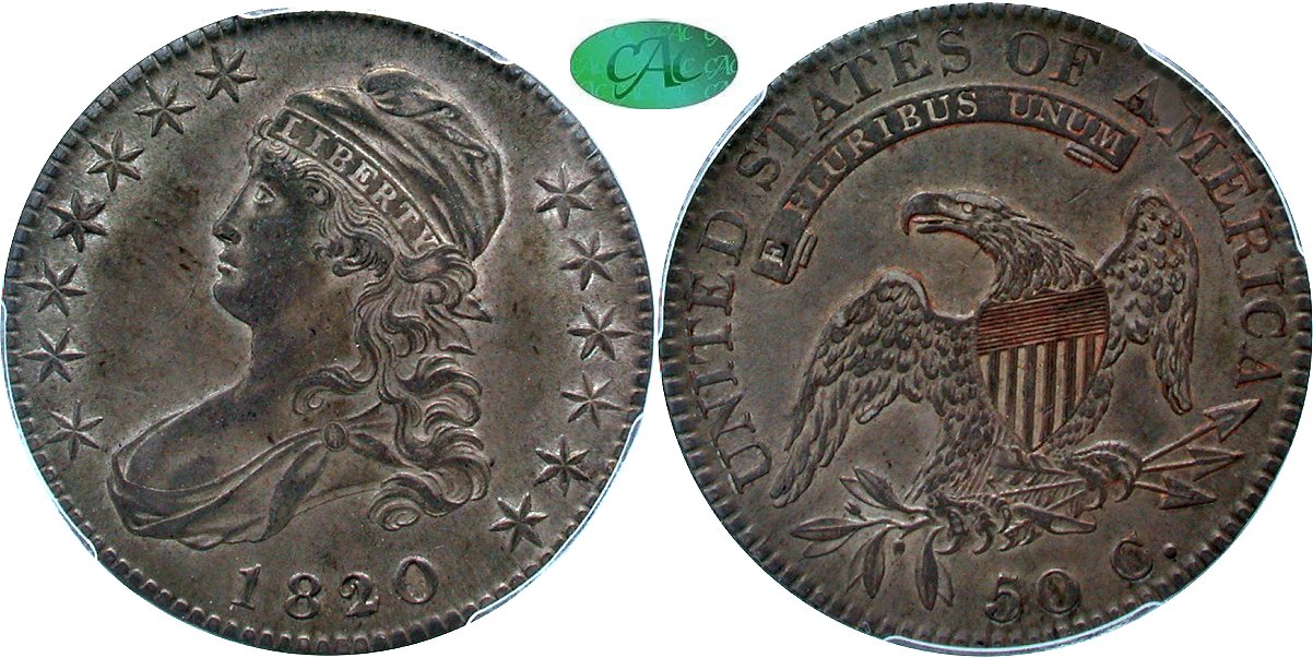 The Old Cedar client gallery captures a marvelous old time Draped and Capped Bust half dollar collection. All halves are certified by PCGS dating back to the 2005 through 2013 timeframe. The blue label holders are mostly Gen 4.4 (2005-2011) with a few intermixed Gen 4.5 (2011-2013) holders. The entire collection had seen a CAC submission after initial GFRC screening. GFRC carefully reviewed each coin in the lot upon arrival. Those that garnered a "choice" quality rating were submitted to CAC with a reasonable outcome.