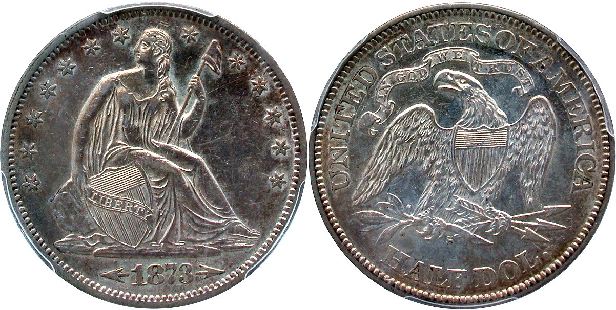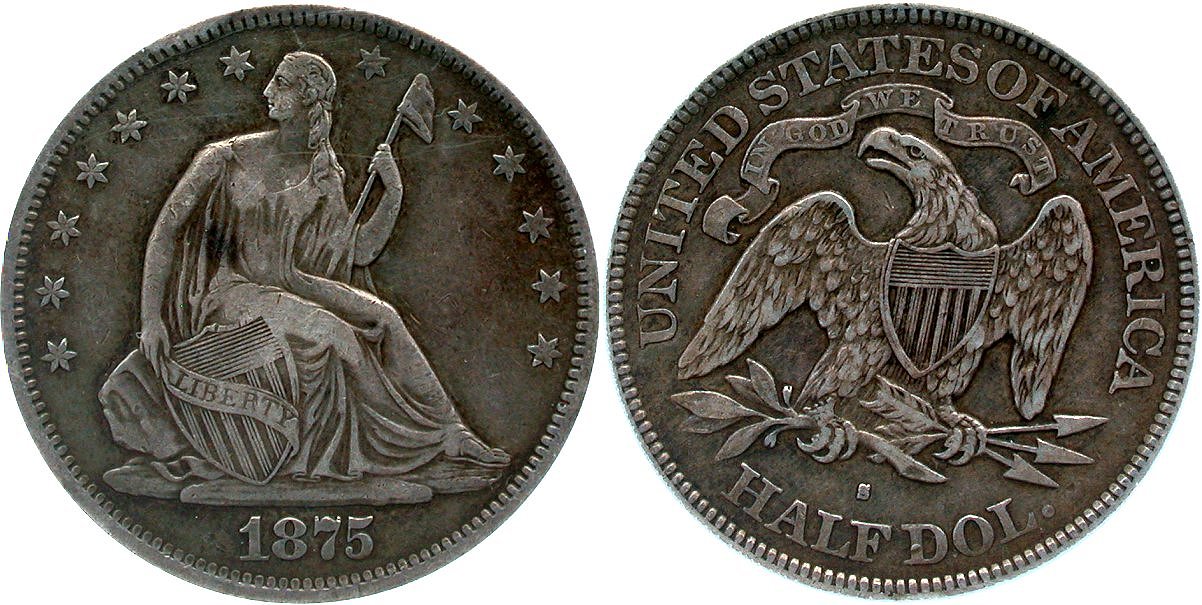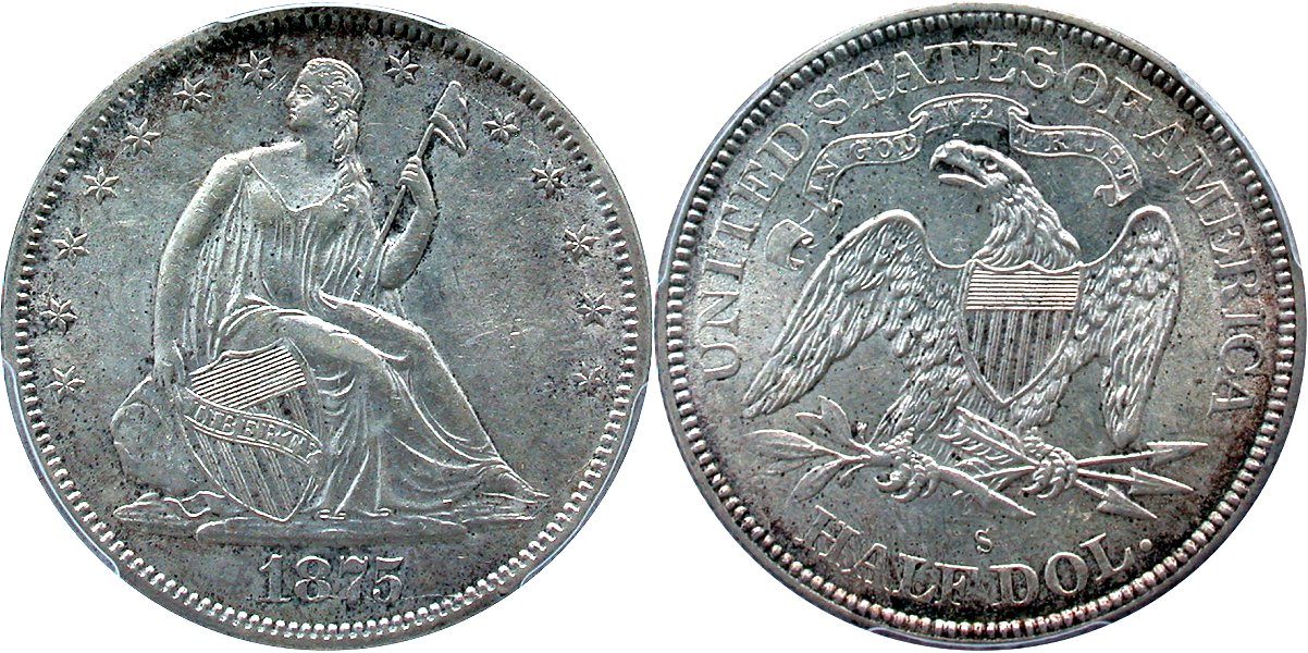 1873 Arrows PCGS AU53 50C                                                   1875-S Micro S PCGS EF45 50C