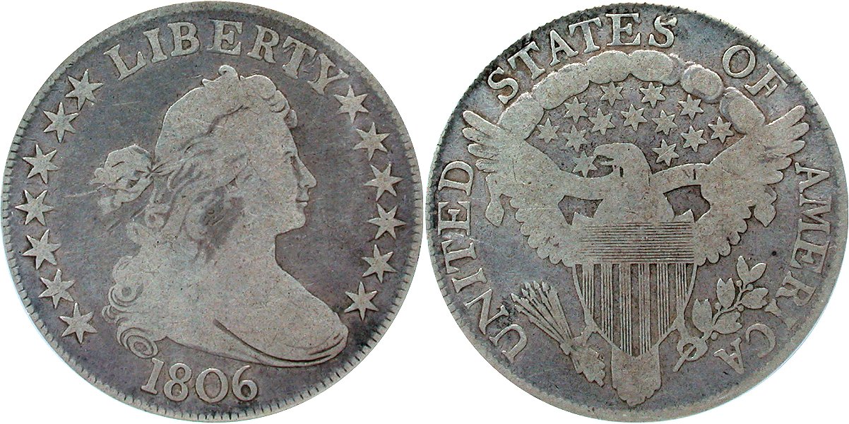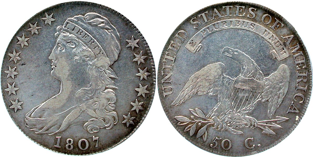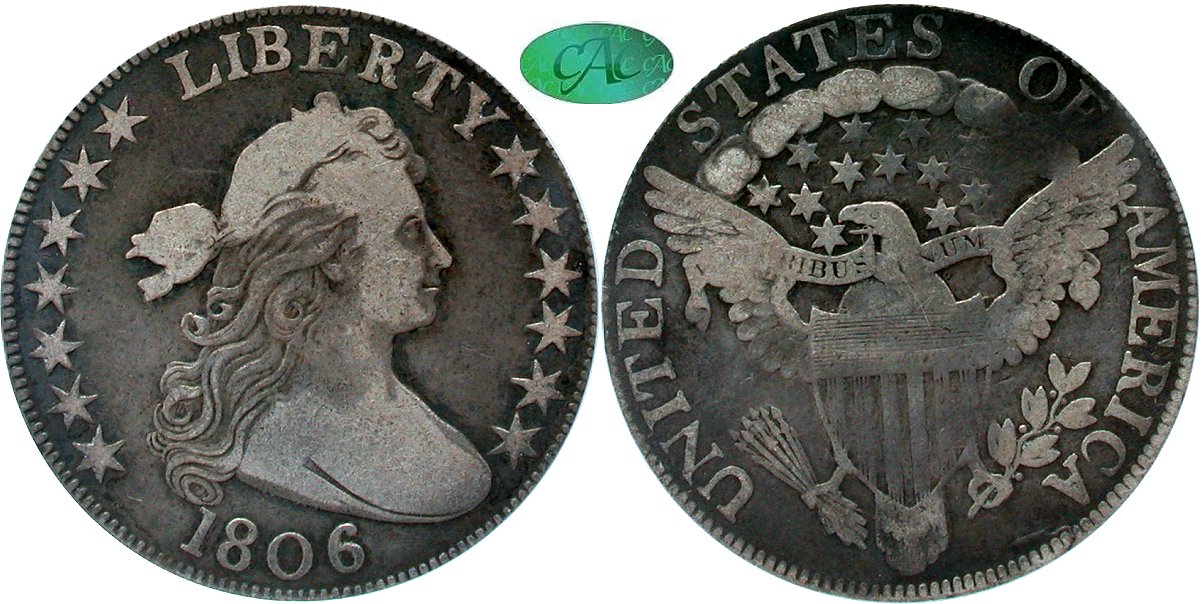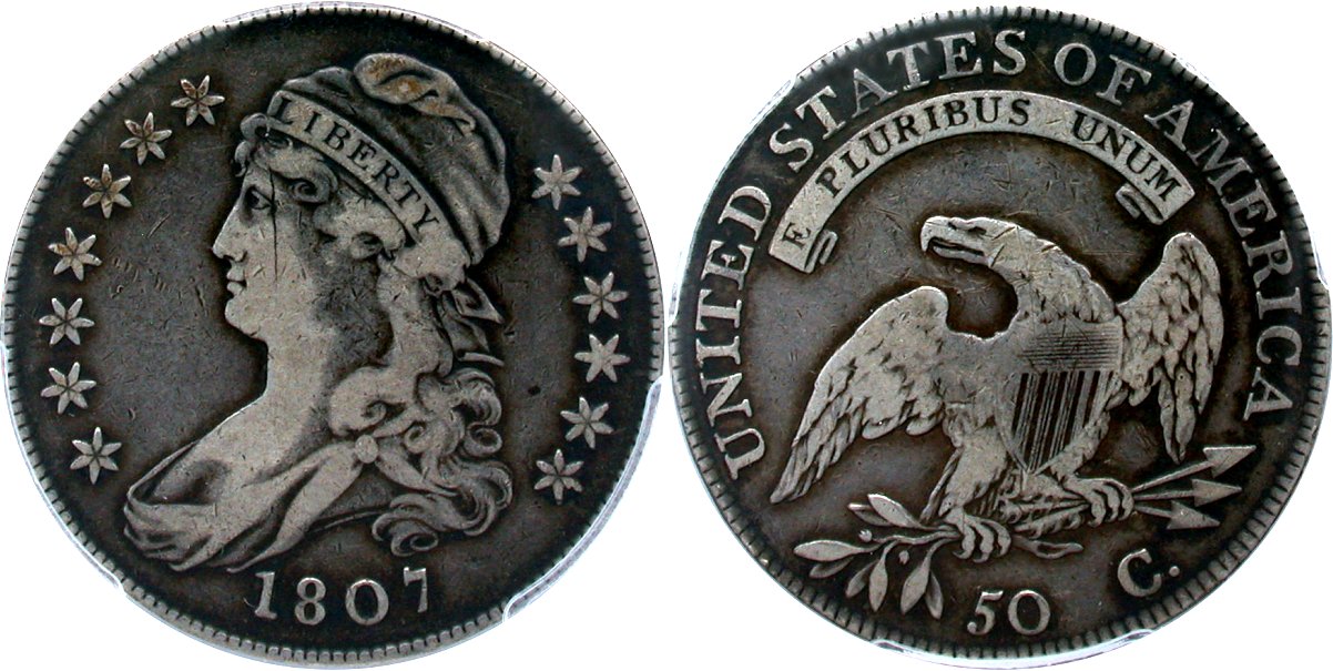 1806 O-105 PCGS F15 CAC 50C                      1806 O-115 PCGS VG08 50C            1807 PCGS Lg Stars 50/20 VF20 50C