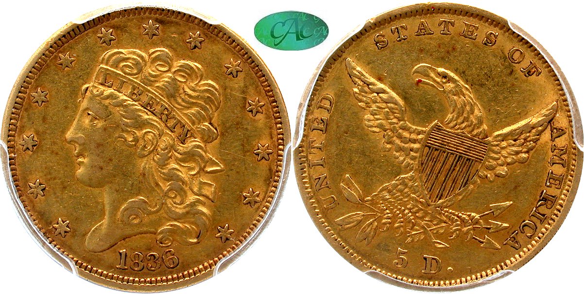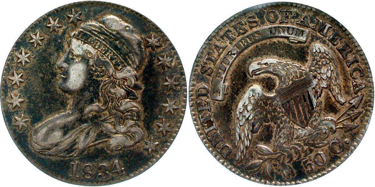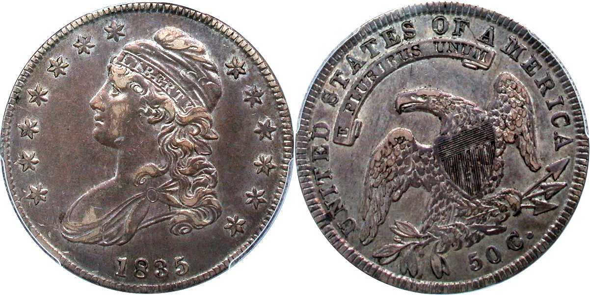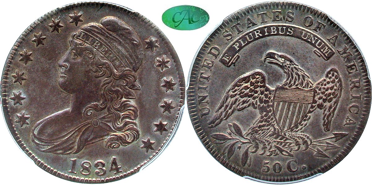 1834 Sm Date, Sm Let PCGS AU50 50C       1834 Lg Date, Lg Let PCGS EF40 50C               1835 O-11x PCGS EF45 50C