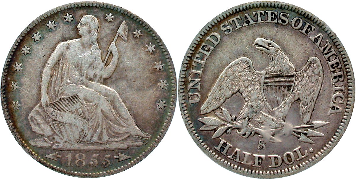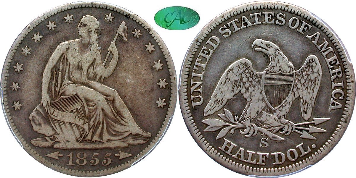 1855/54 PCGS AU55 50C                                                       1855-S PCGS EF45 50C
