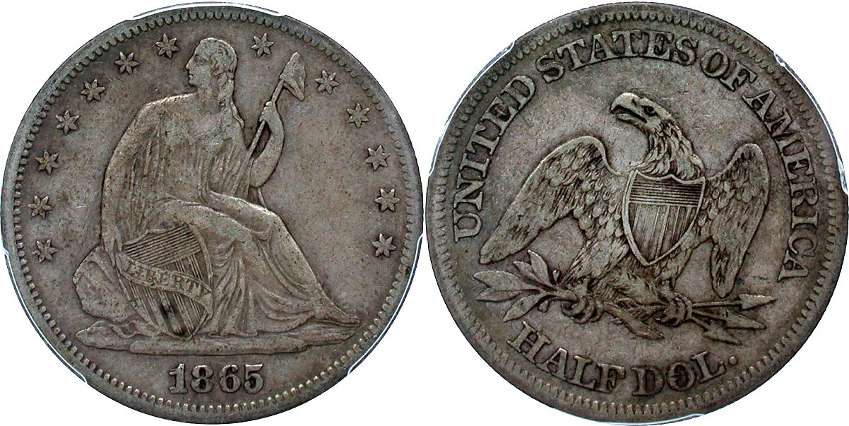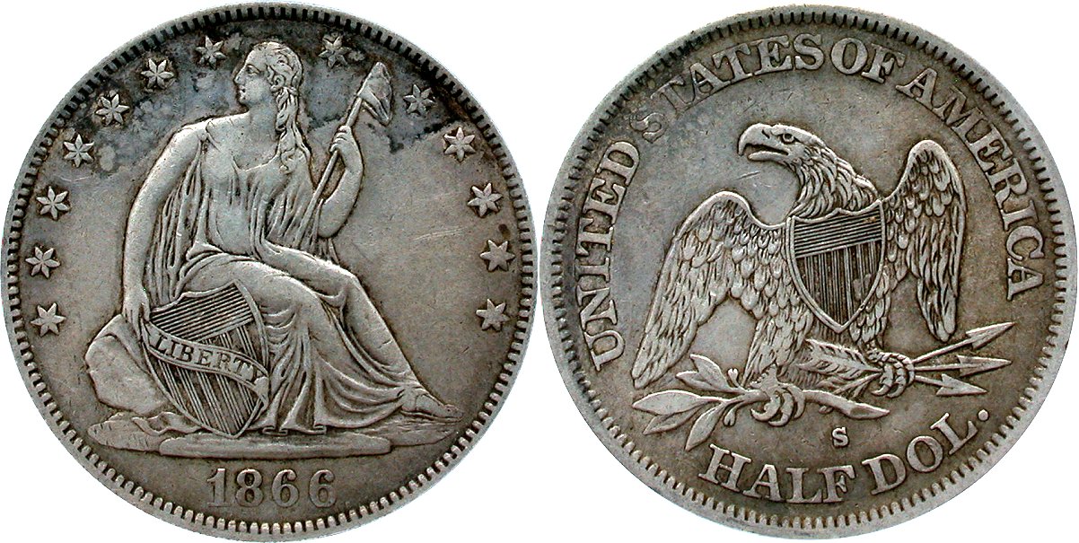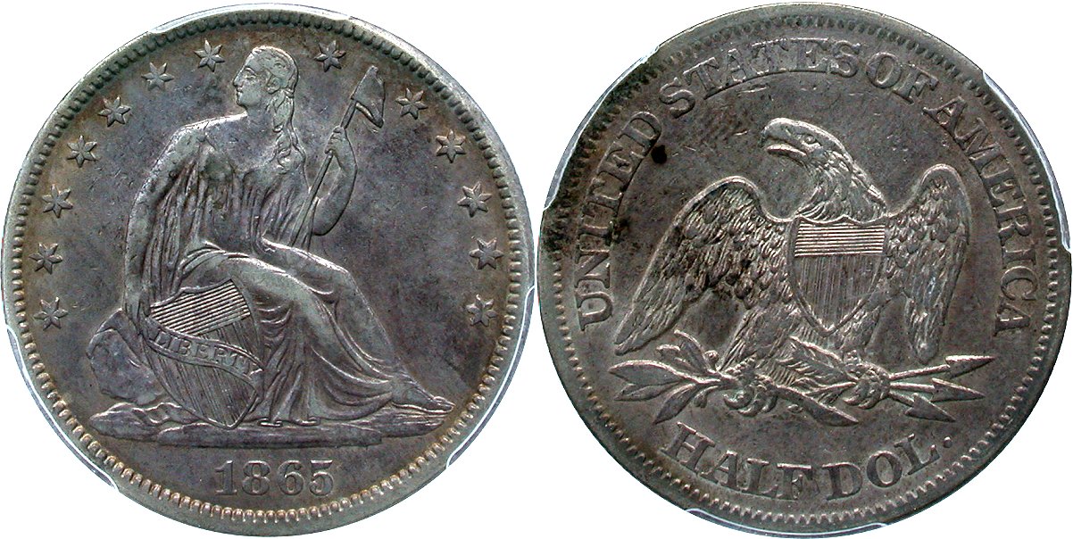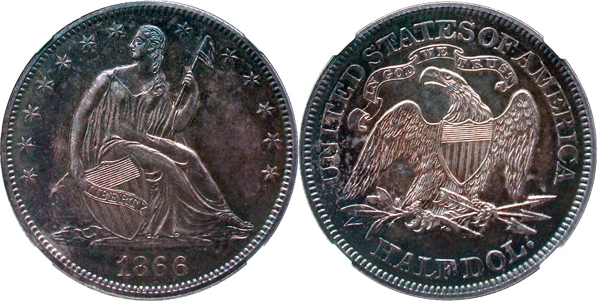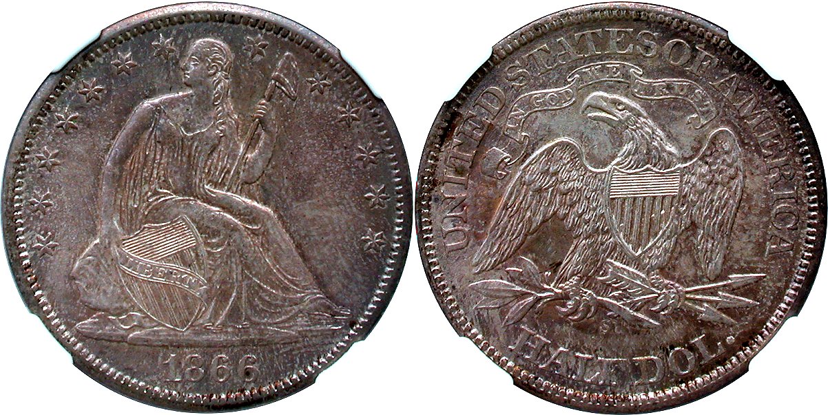 1865 PCGS AU53 50C                                                           1866 Motto PCGS AU58 50C