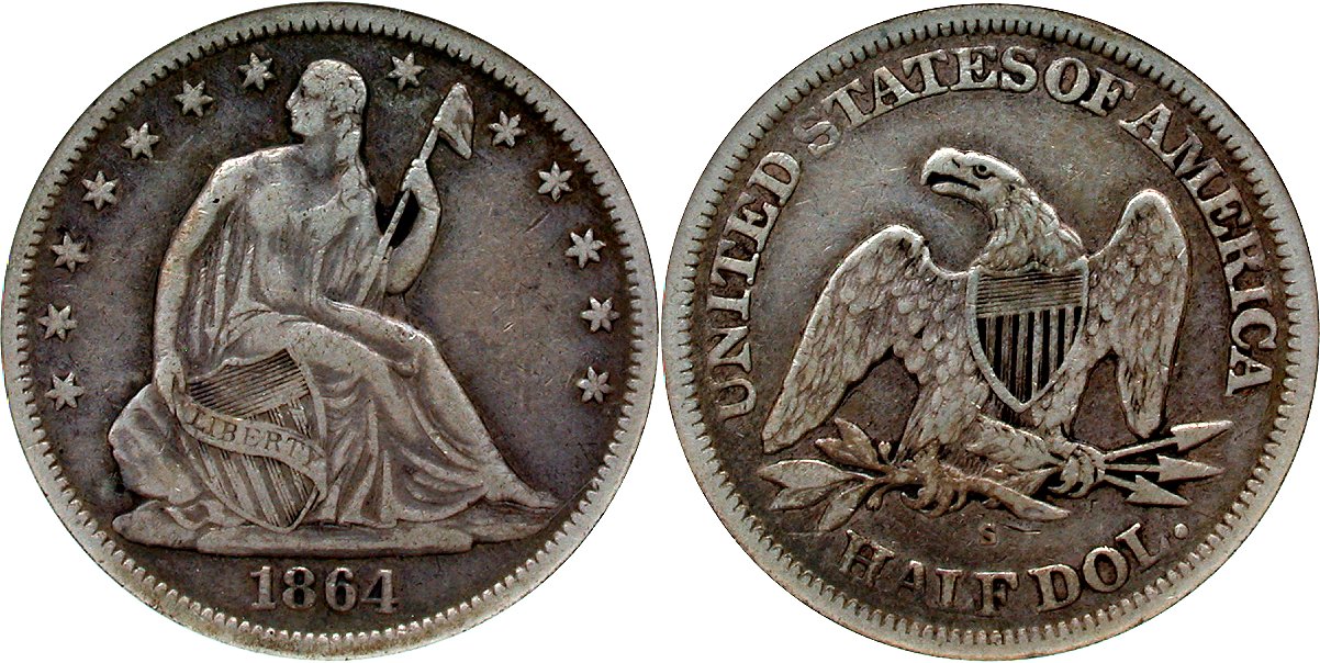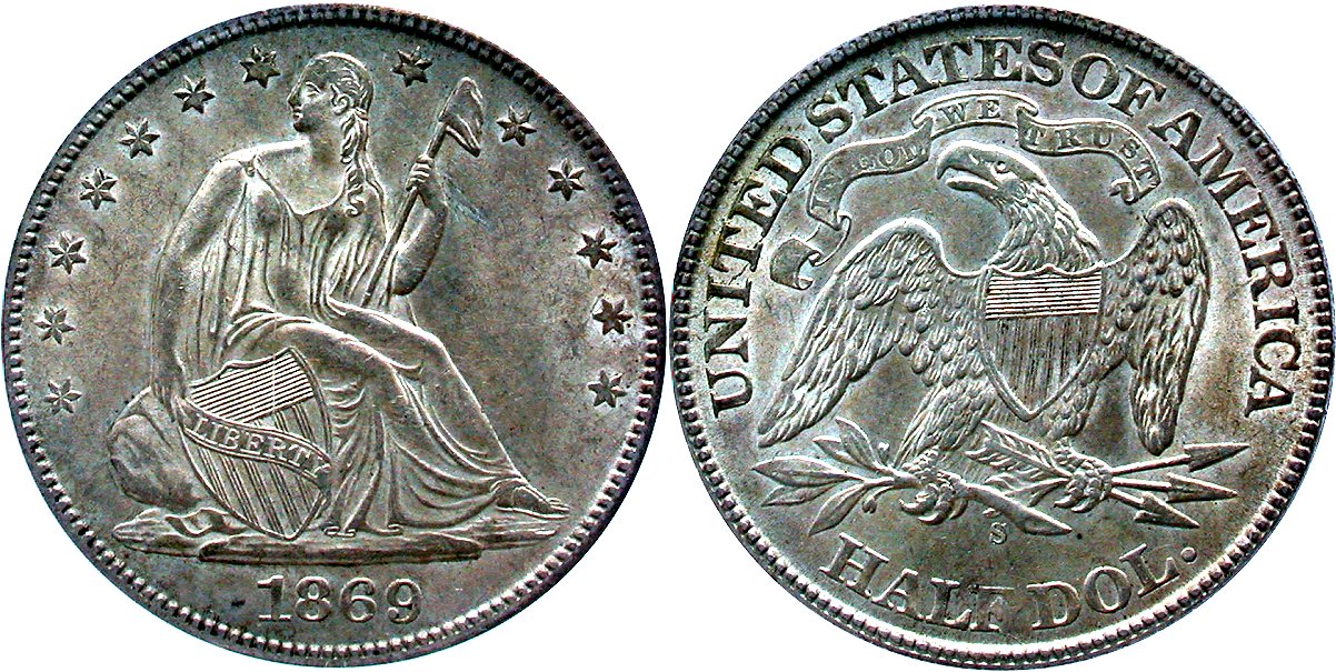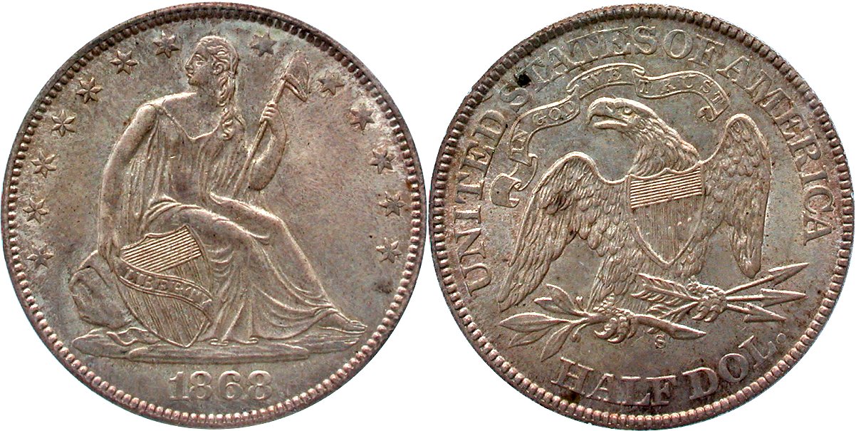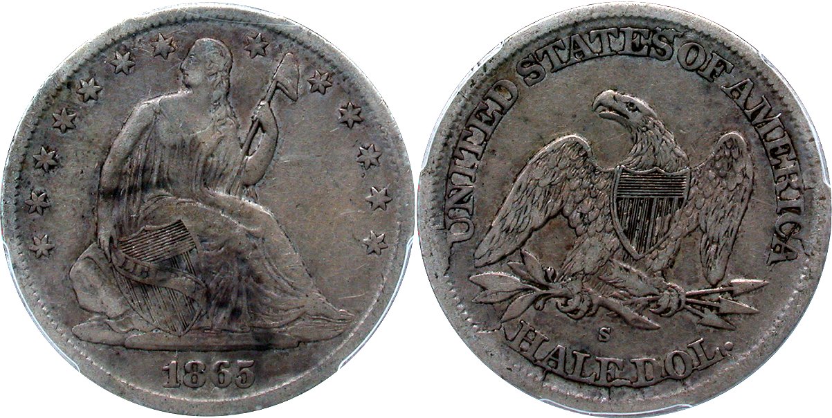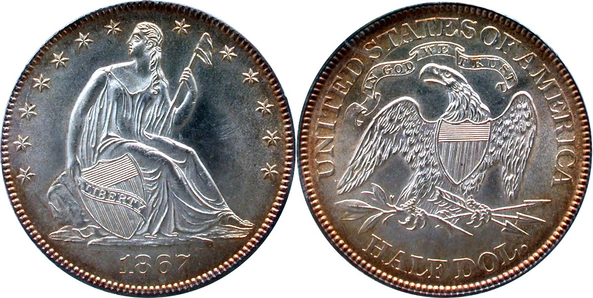 1865 PCGS AU53 50C                                                           1866 Motto PCGS AU58 50C
