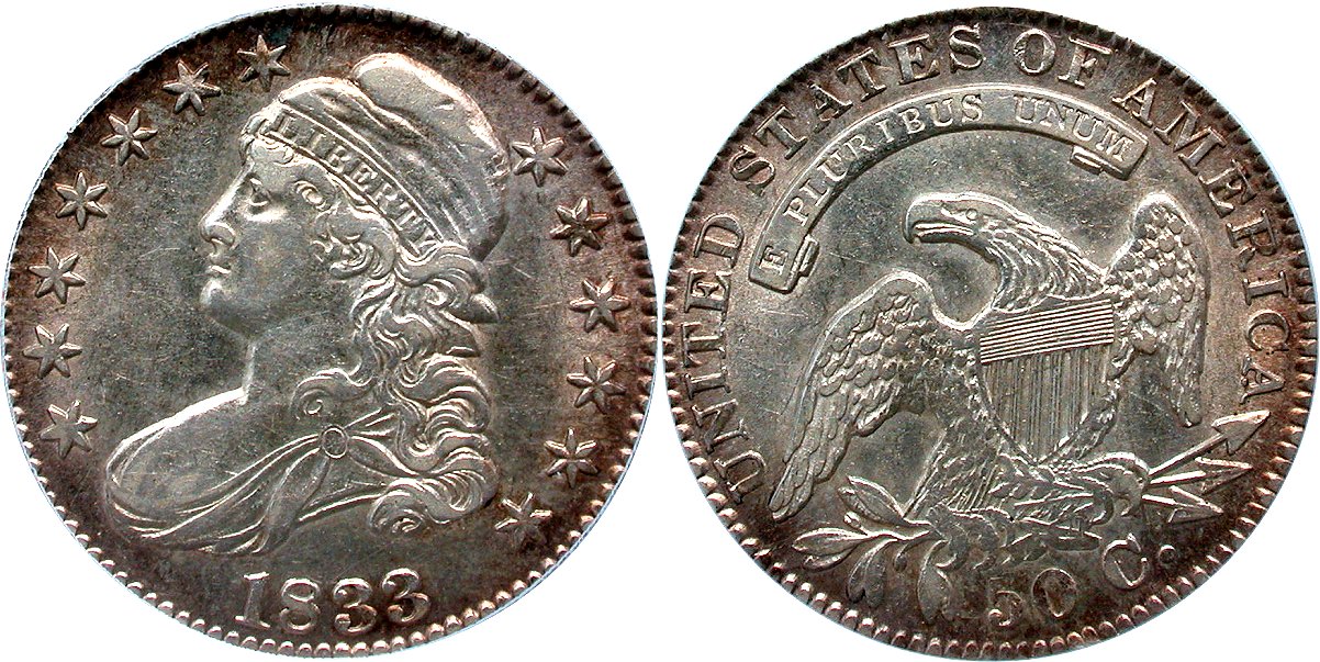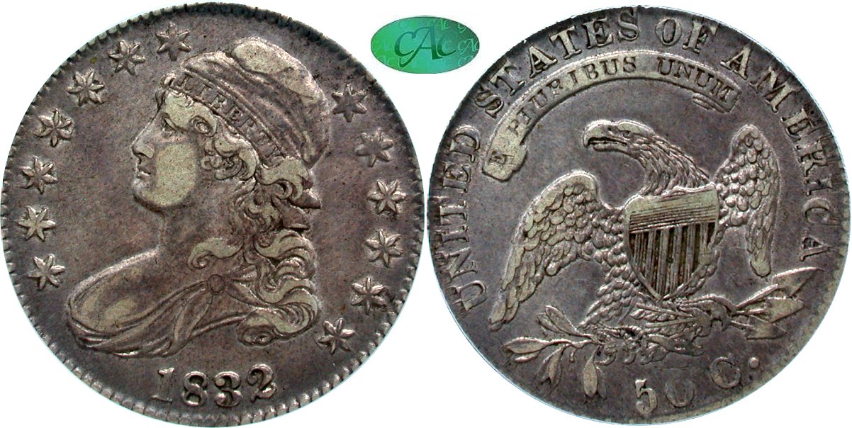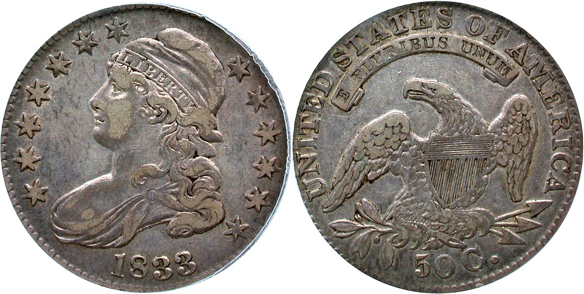 1832 Sm Letters PCGS EF40 CAC 50C               1833 O-10x PCGS EF40 50C                   1833 O-11x PCGS AU50 50C