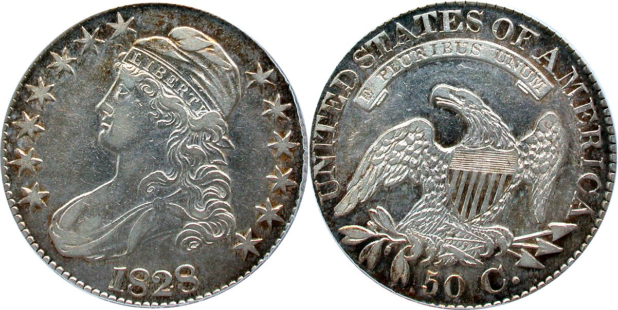 1828 Sq Base 2, Lg 8s PCGS EF40 50C            1828 O-103 PCGS EF45 CAC 50C           1830 Small 0 O-115 PCGS EF40 50C