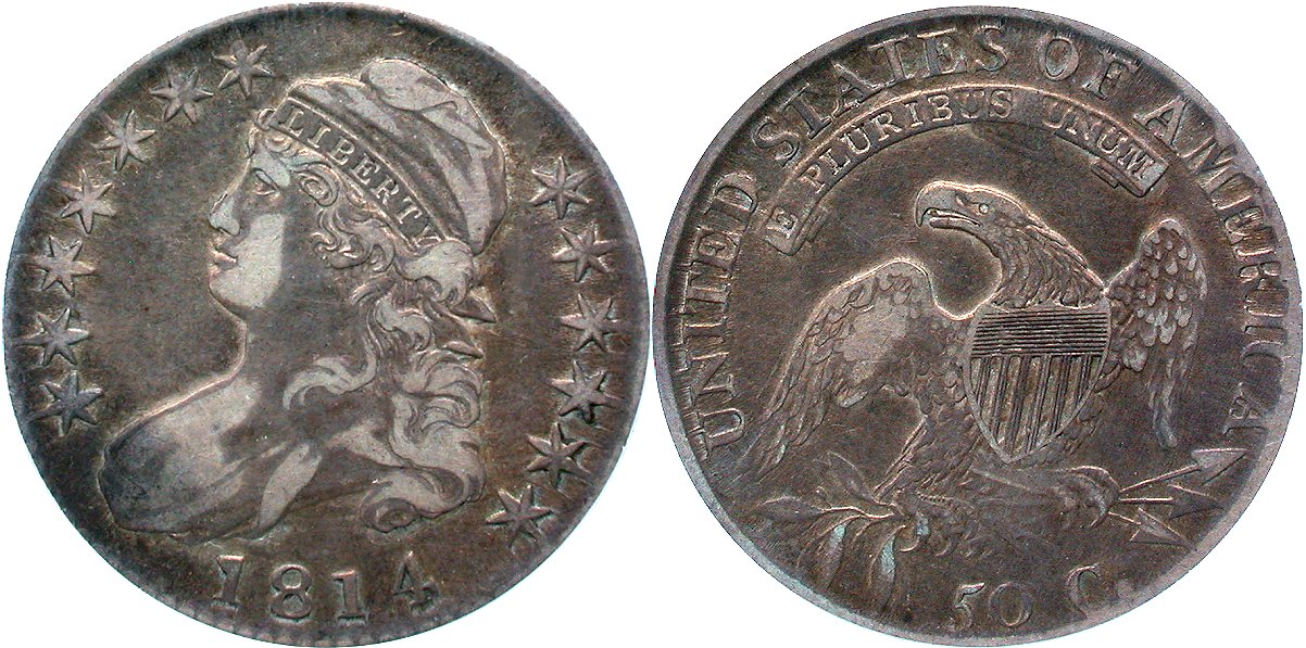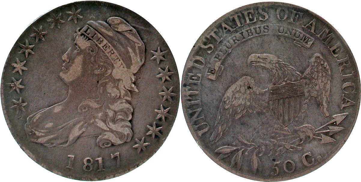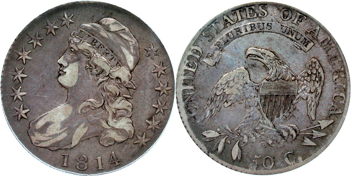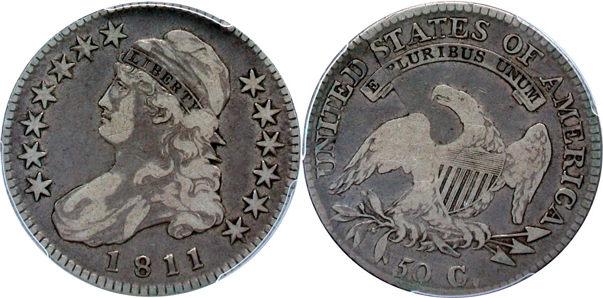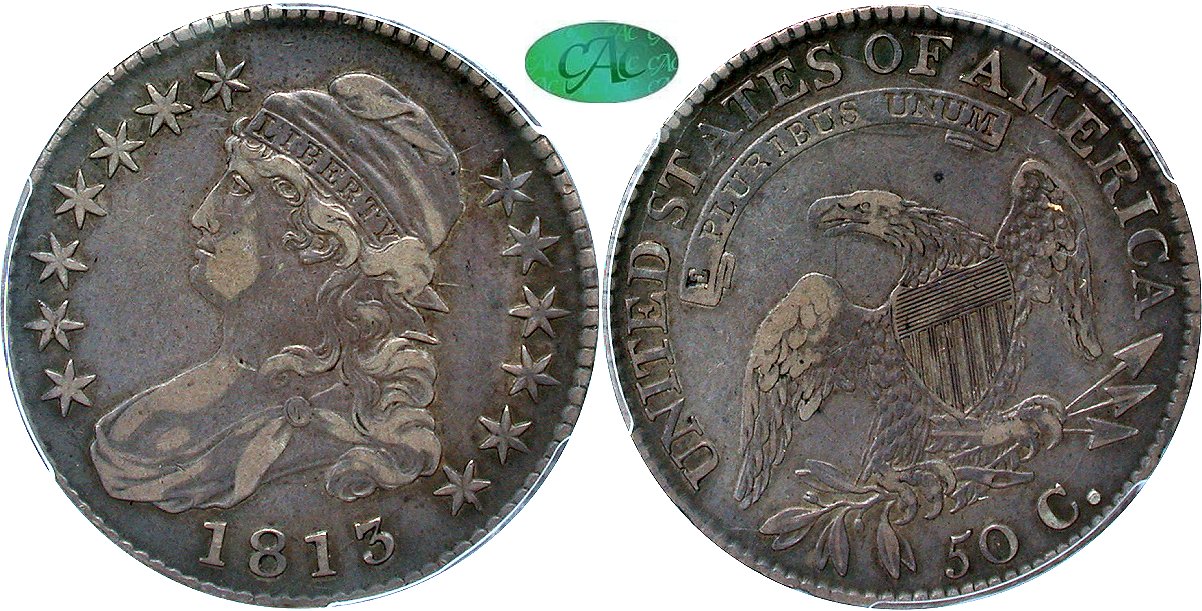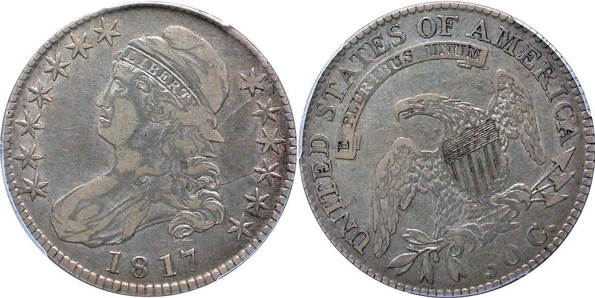 1813 50c/UNI PCGS VF25 50C                     1814 O-105a PCGS VF25 50C            1817 O-106a Single Leaf PCGS VF30 50C