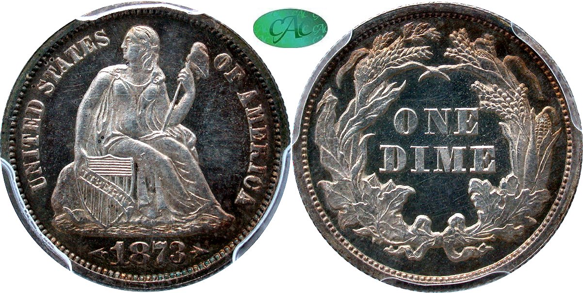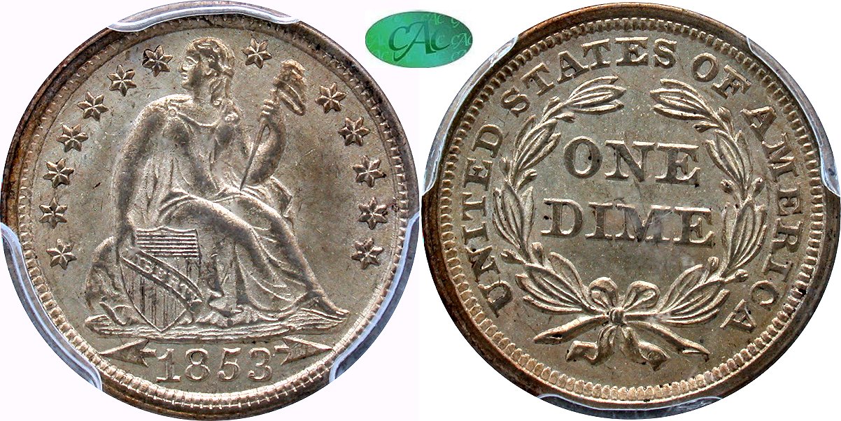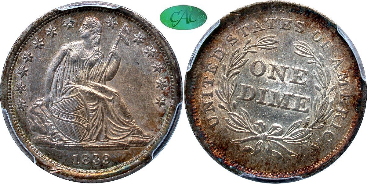 1839 F-101 PCGS AU55 CAC 10C                                  1873 Arrows F-102 PCGS PR64CAM CAC 10C