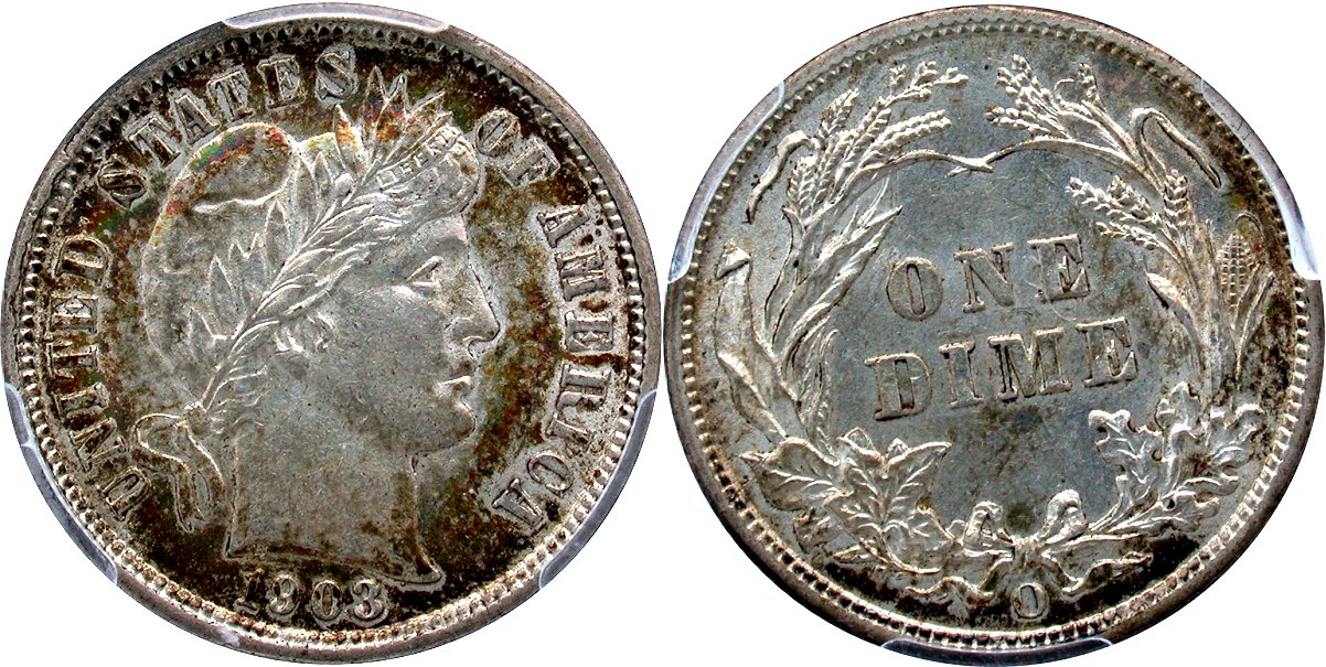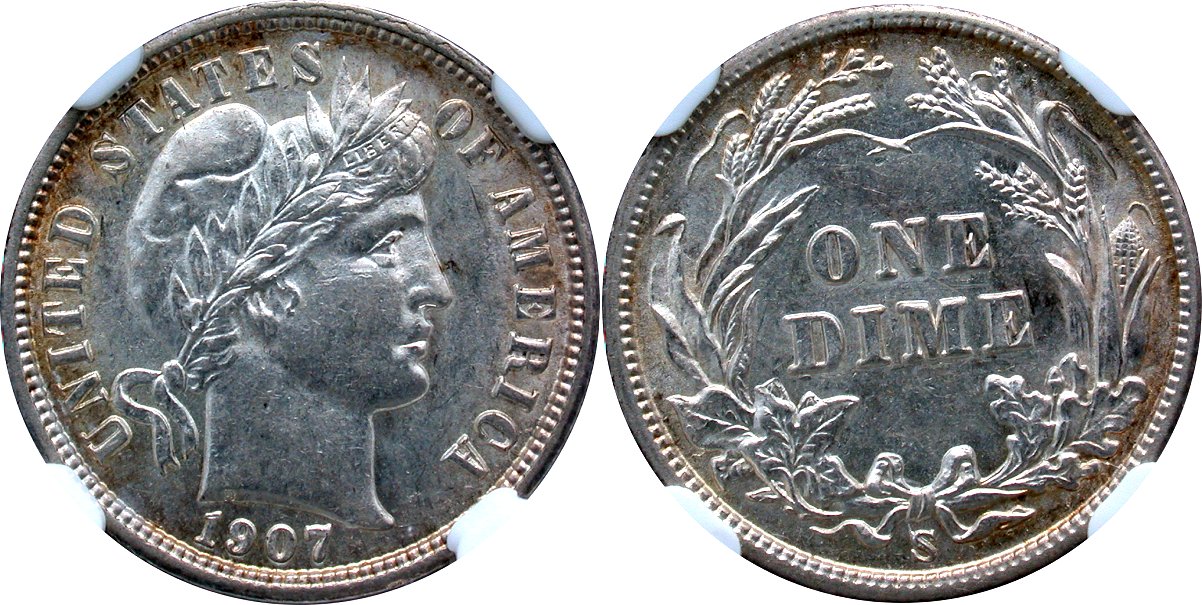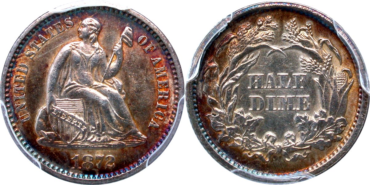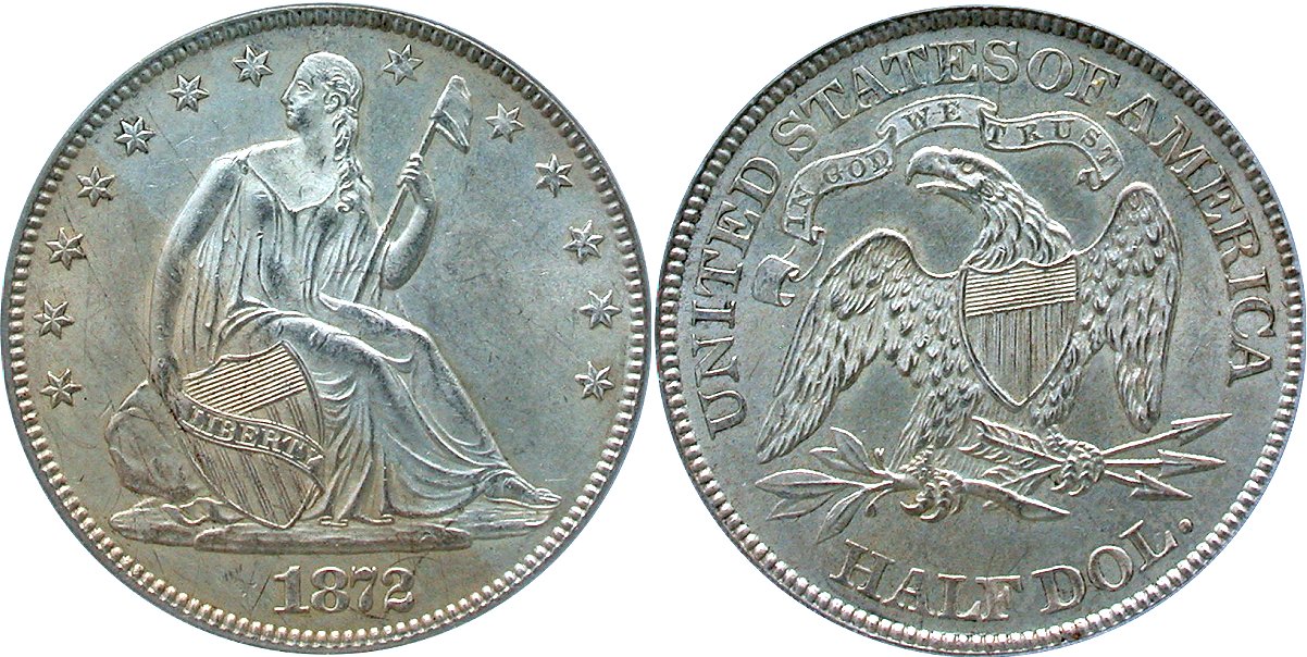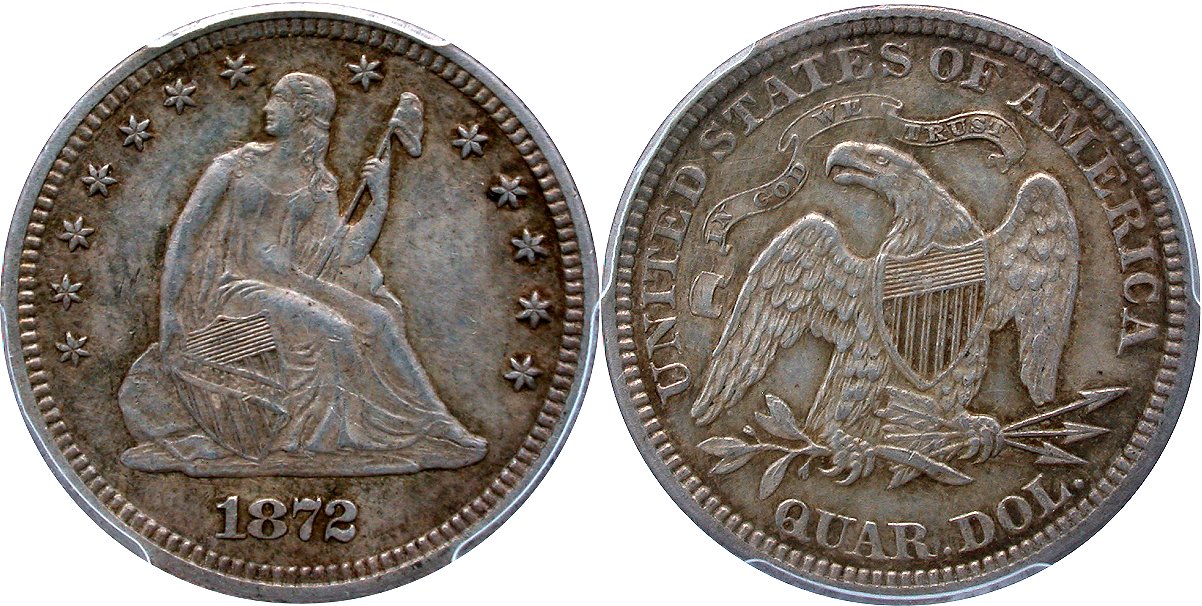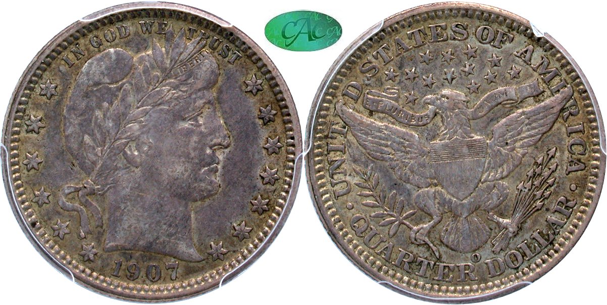 1872 PCGS AU58 H10C                                                         1907-O PCGS AU50 CAC 25C