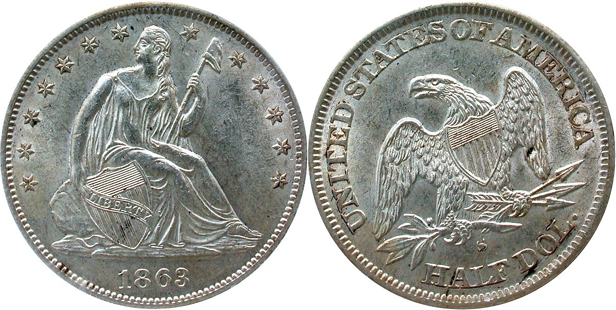 1861 PCGS MS62 50C                                                              1863 PCGS PR45 50C