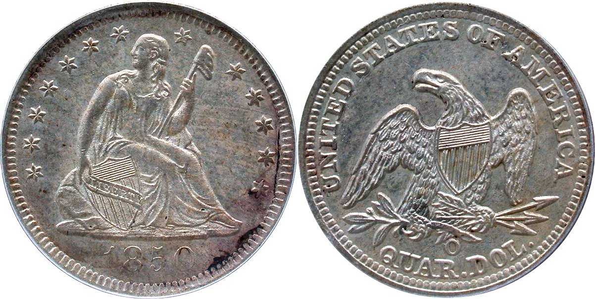 1850-O PCGS AU58 25C                                                   1853-O A&R PCGS AU55 25C