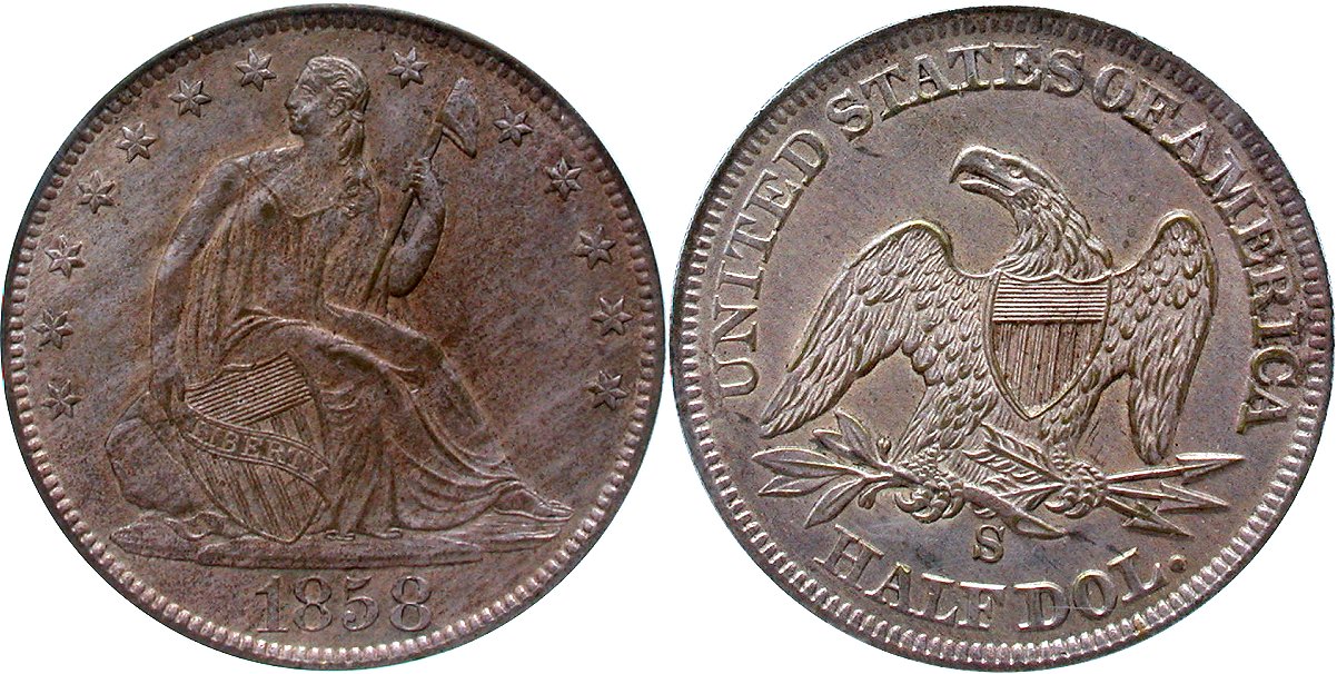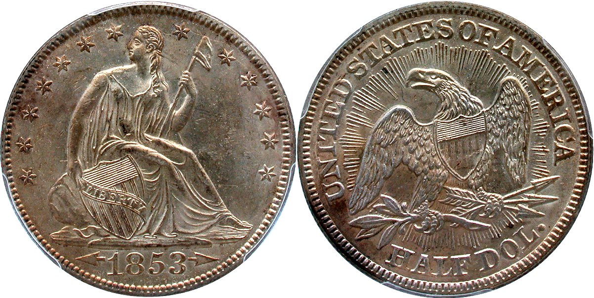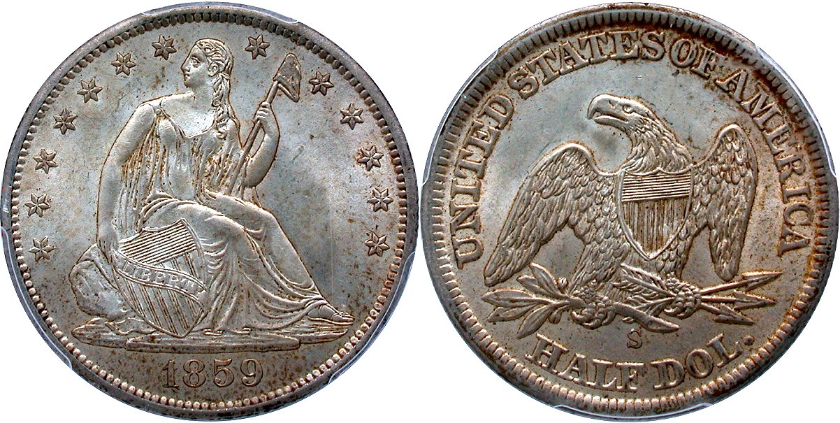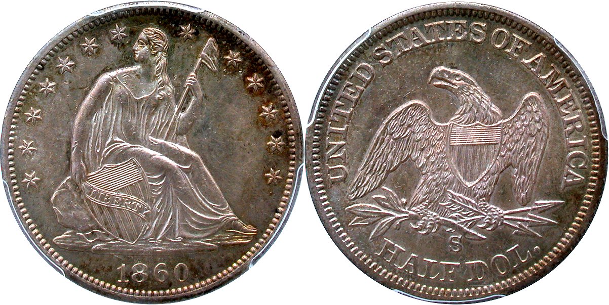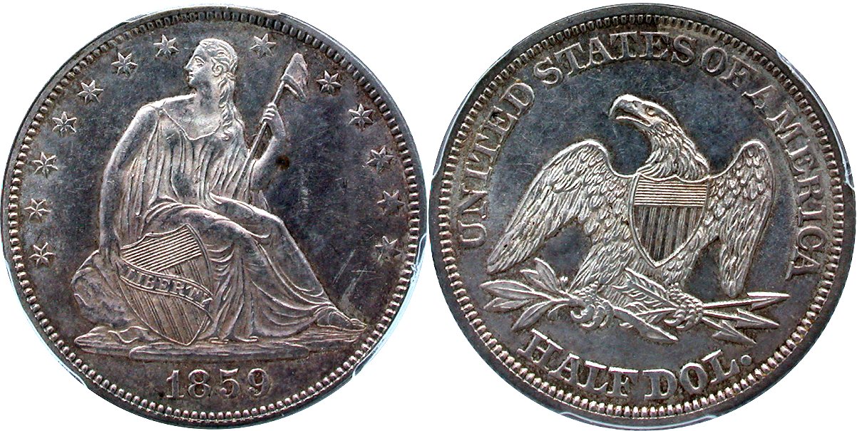 1853 A&R PCGS AU58; 1853-O WB-21 PCGS AU55; 1858-O RPD PCGS EF45 Top 100; 1858-S WB-11 PCGS AU53 Top 100; 1861-S WB-9 PCGS AU55 CAC; 1865 PCGS EF45; 1865-S WB-5 PCGS AU55; 1873 Arrows WB-107 PCGS VF35 Top 100; 1878 PCGS AU55; 1887 PCGS MS64; 1891 PCGS MS63