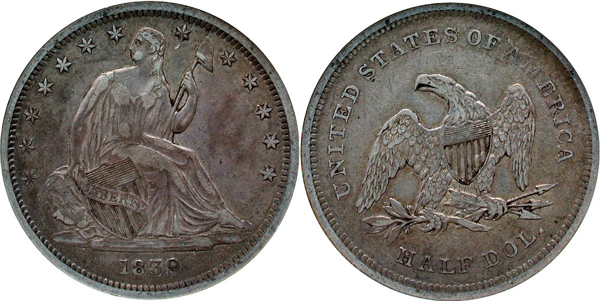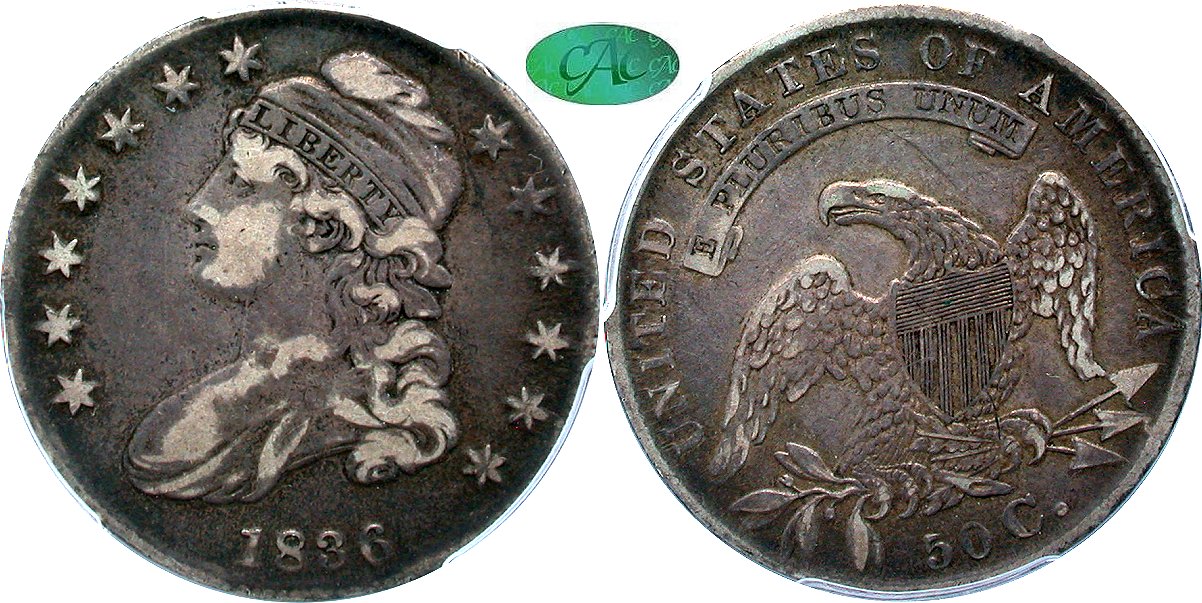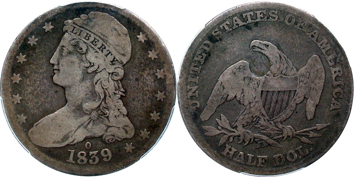 1836 O-106a PCGS VF30 CAC 50C                    1837 RE PCGS VF35 50C                         1839-O PCGS VG10 50C