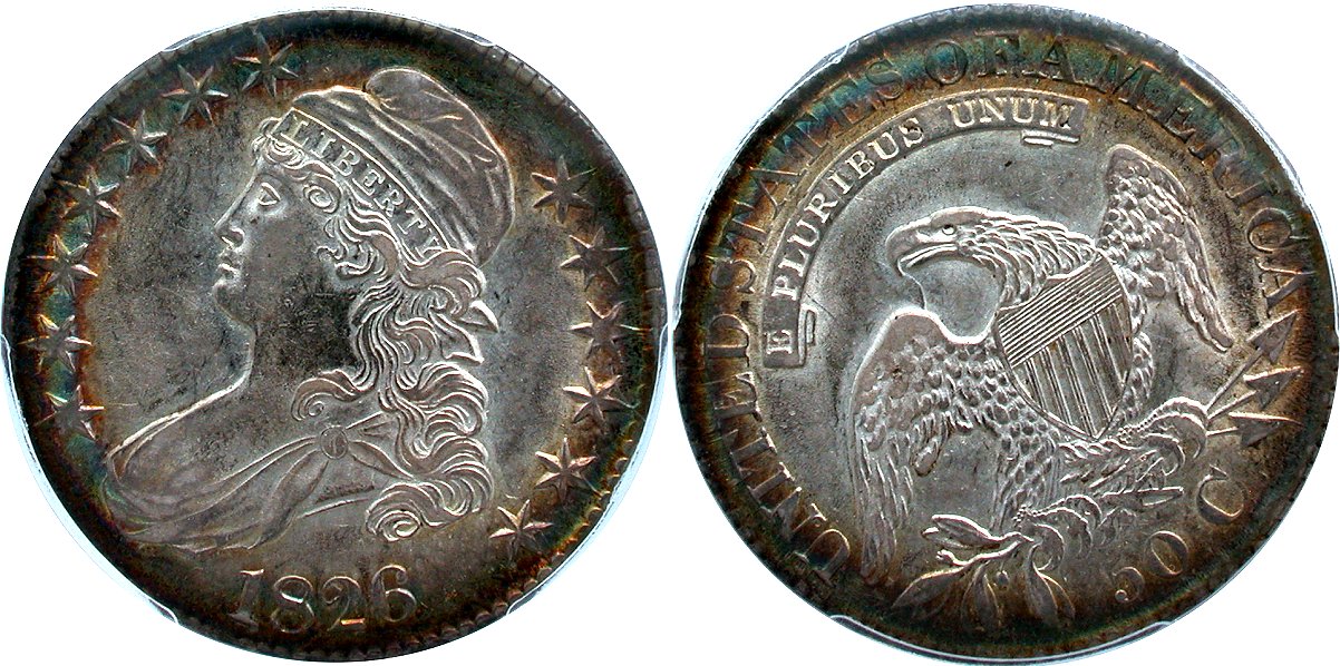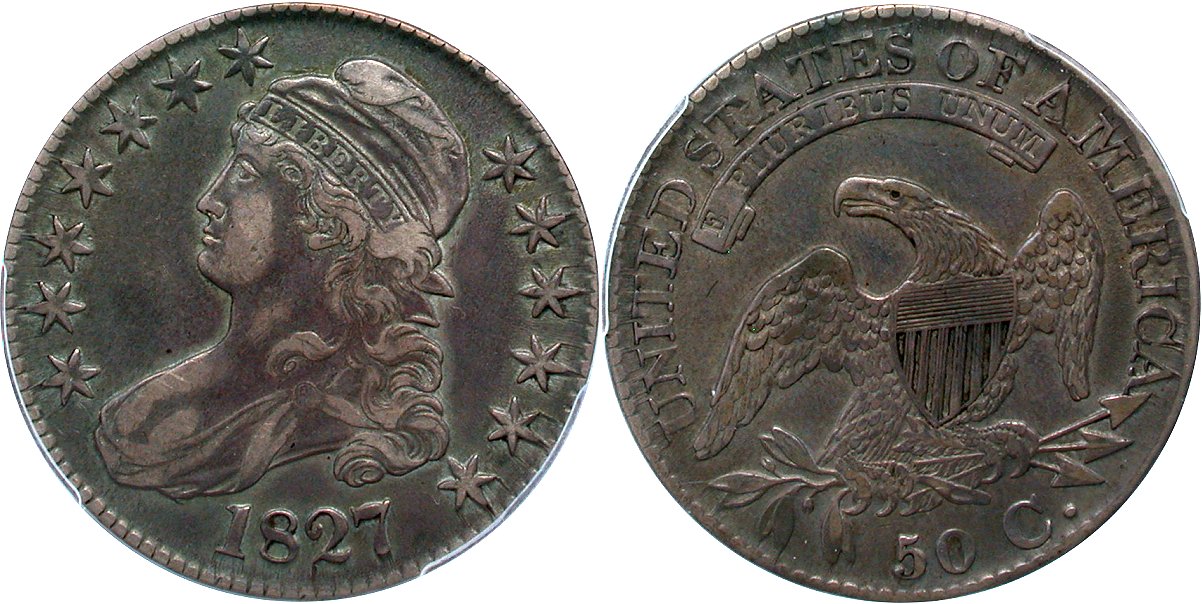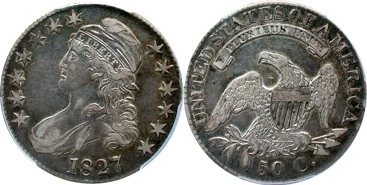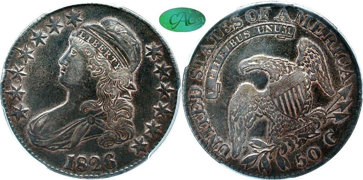 1826 O-10x PCGS VF30 CAC 50C              1827 Sq Base 2 PCGS VF35 50C             1827 Curl Base 2 PCGS EF40 50C