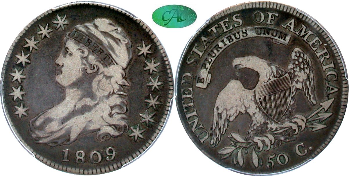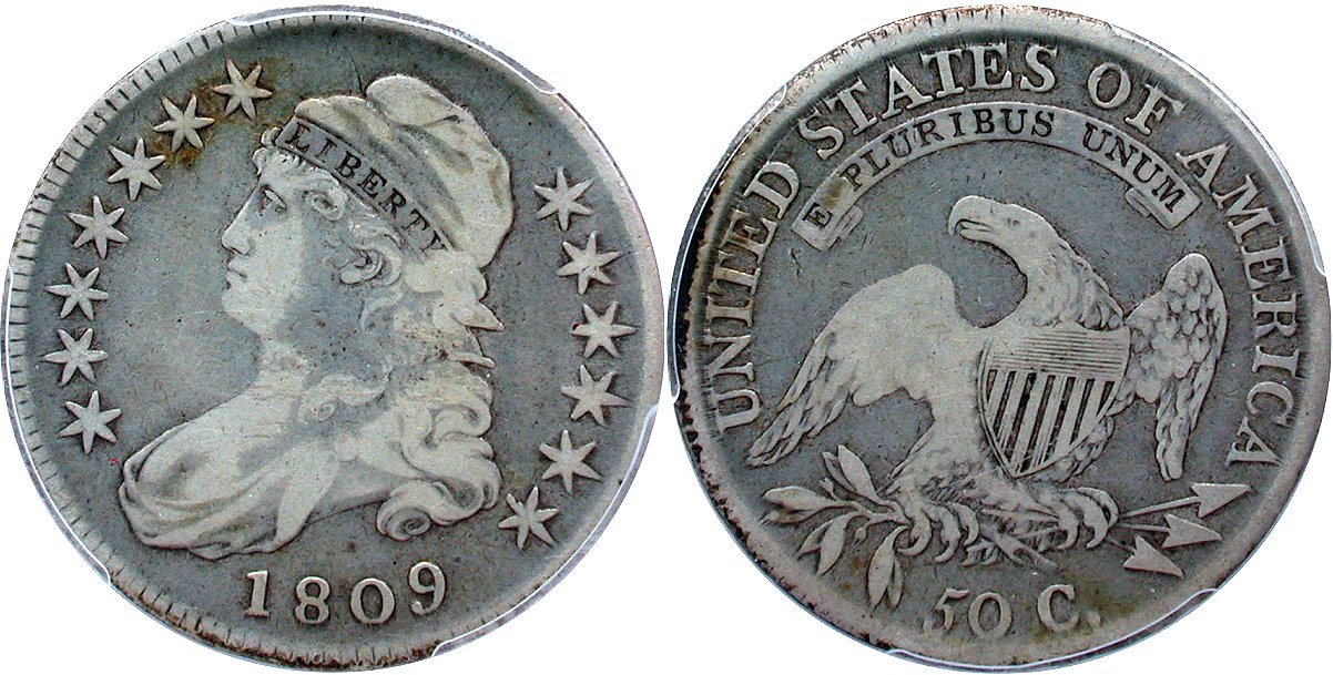 1808 O-102a PCGS VF25 50C                1809 O-103 PCGS VG10 CAC 50C                 1809 O-102a PCGS F12 50C