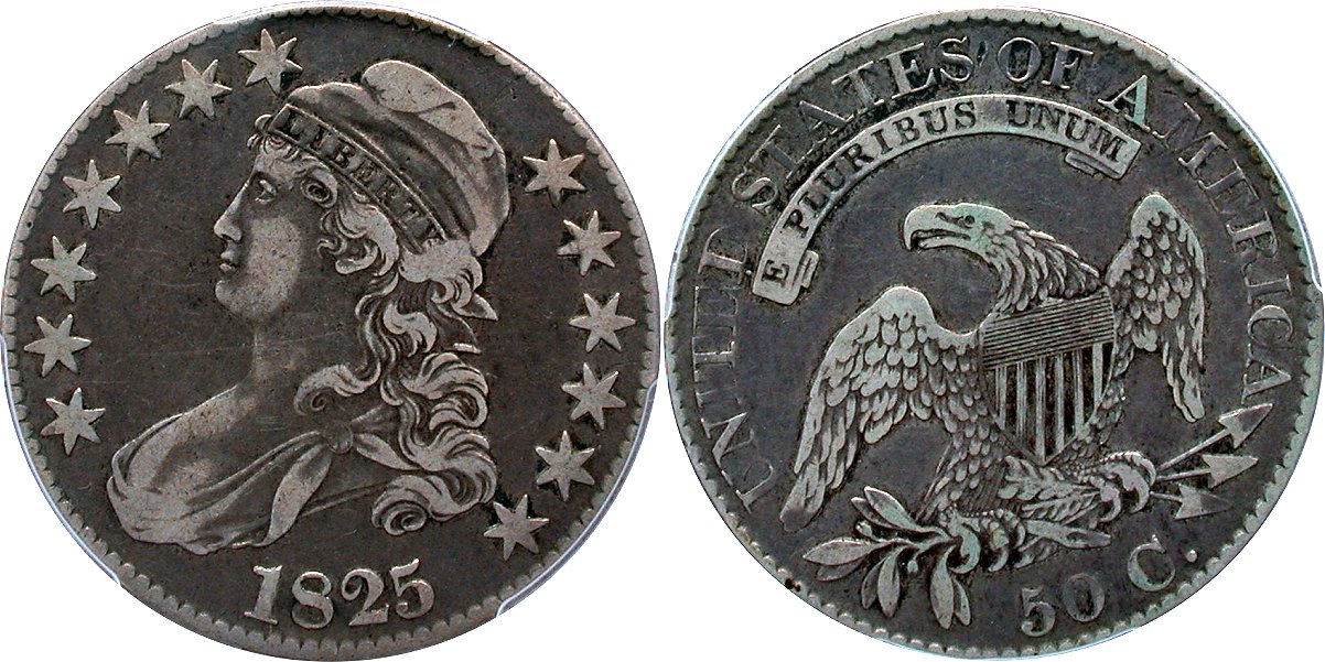 1824 O-113 PCGS VF35 50C                       1825 O-10x PCGS EF45 50C                     1825 O-117 PCGS VF25 50C