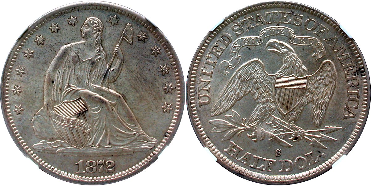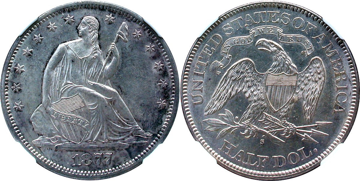 The 1873 Arrows half is a nice type coin with lots of eye appeal and a fair reserve price. Next is the finest certified 1875-S Micro S, a rare late date die variety.