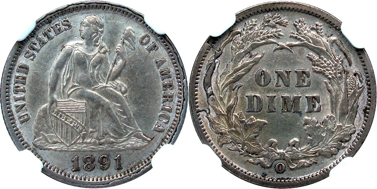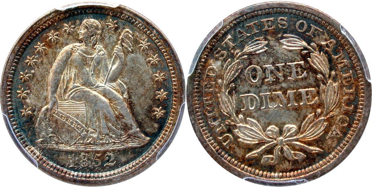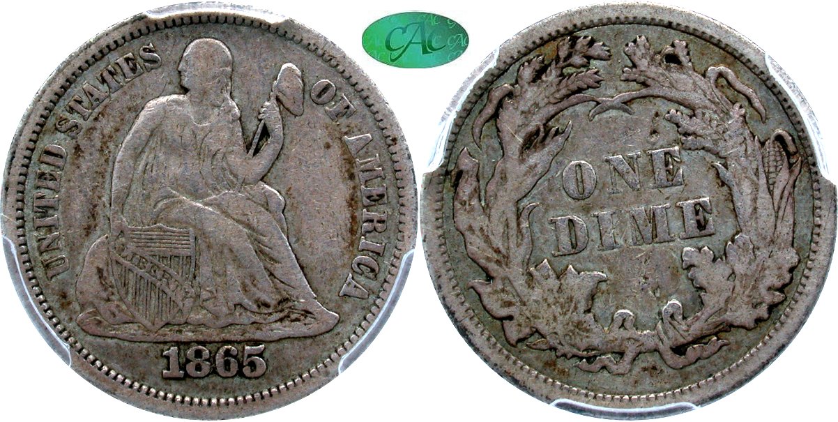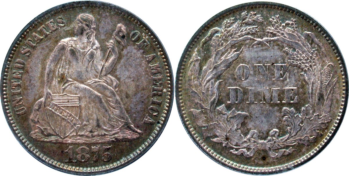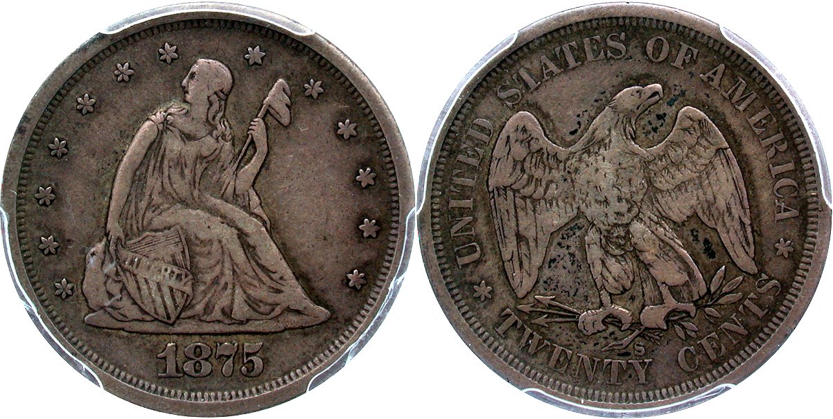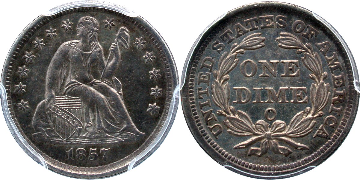 1857-O PCGS AU58 H10C                          1892 PCGS MS64 CAC 10C                      1875-S BF-16 PCGS VF35 20C